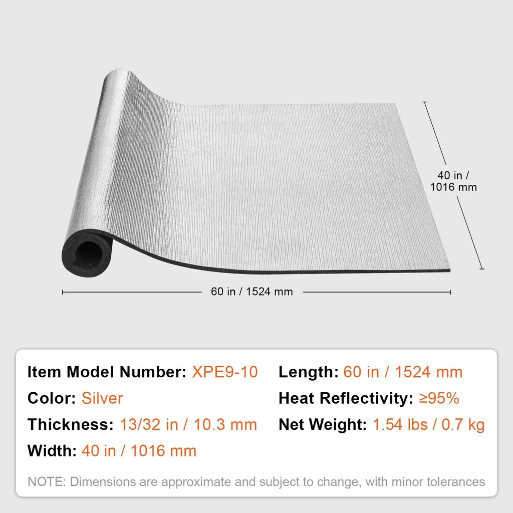 Reflective Insulation Roll, Xpe Foam Core Radiant Barrier, 10.3 Mm 40 In X 5 Ft, Aluminum Foil Foam Core Heat Reflective Shield - 40 In X 5 Ft