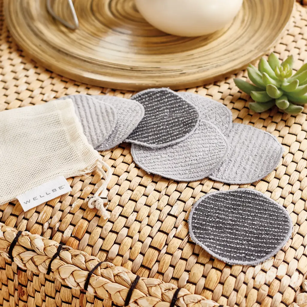 Face pads you don't have to throw out! The Refresh Reusable Face Pads are made of cotton and rayon derived from bamboo charcoal. Quick drying and odor blocking capabilities make these face pads perfect for applying creams, oils, lotions and astringents. These face pads stay fresh with antimicrobial properties in the fibers preventing the growth of microorganisms. Includes 7 pads for each day of the week and a reusable mesh bag for easy laundering.