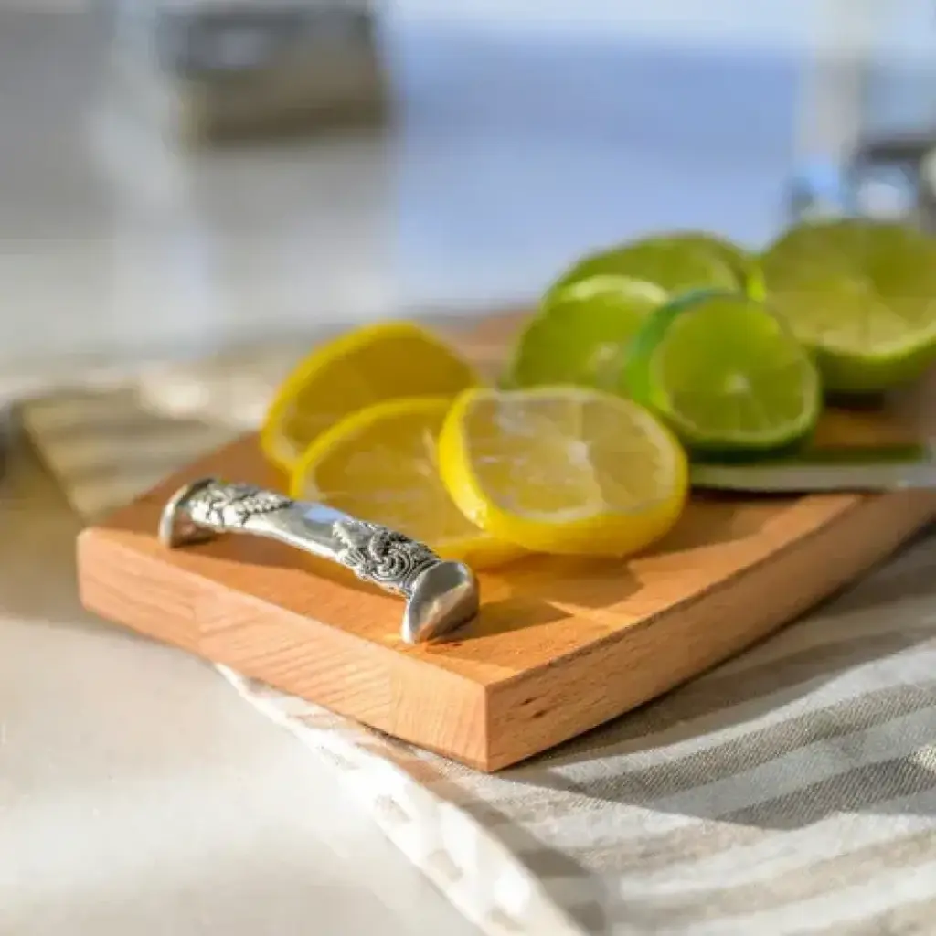A few friends are stopping by and you want to offer them a little something. Our Regale Wood Bar Board is just the piece you need! The beautiful beachwood surface with stamped pewter handles is both stylish and casual. Perfect, beautiful serving piece for cutting limes and lemons at your bar or presenting a selection of cheese. Another wonderful everyday piece! Founded in 1997 by Ann Skidmore, Arte Italica is a story of one woman's passion for Italian history, culture, art, and vintage pewter. Today, Arte Italica is one of the leading importers of European tabletop and home accessories products in the United States. Every piece is handmade and designed so that they can easily be mixed and matched to create a timeless, classic, and effortless look.