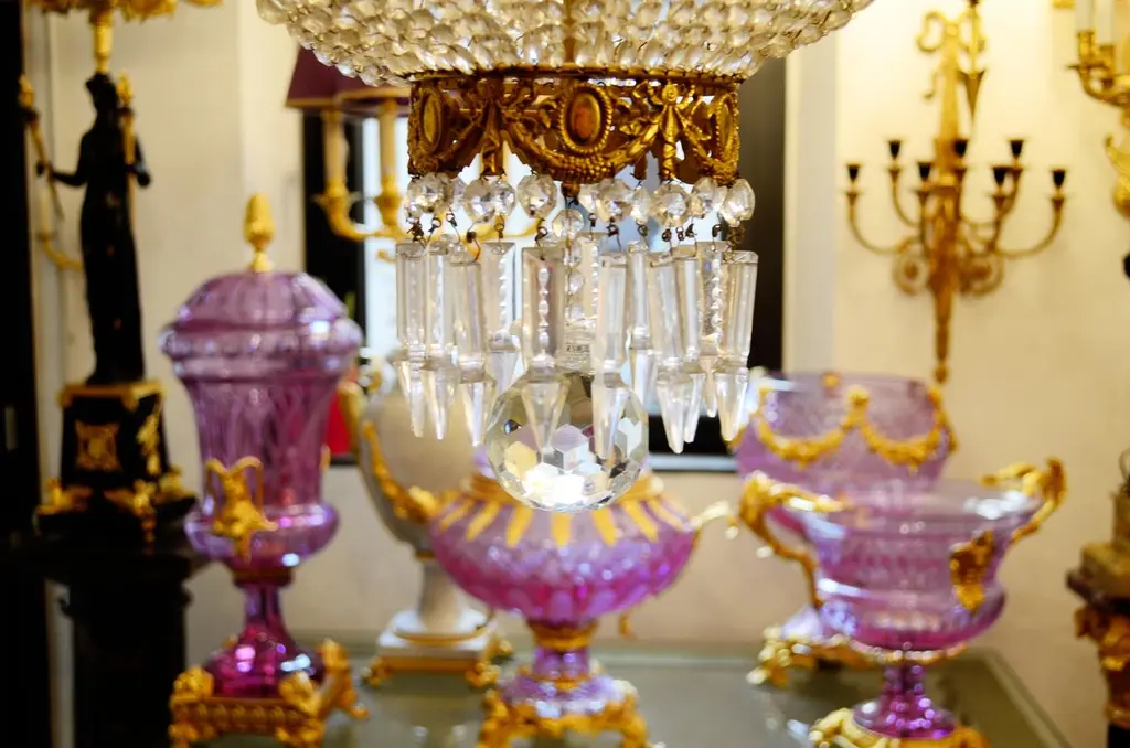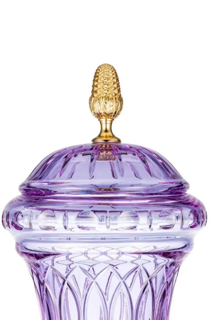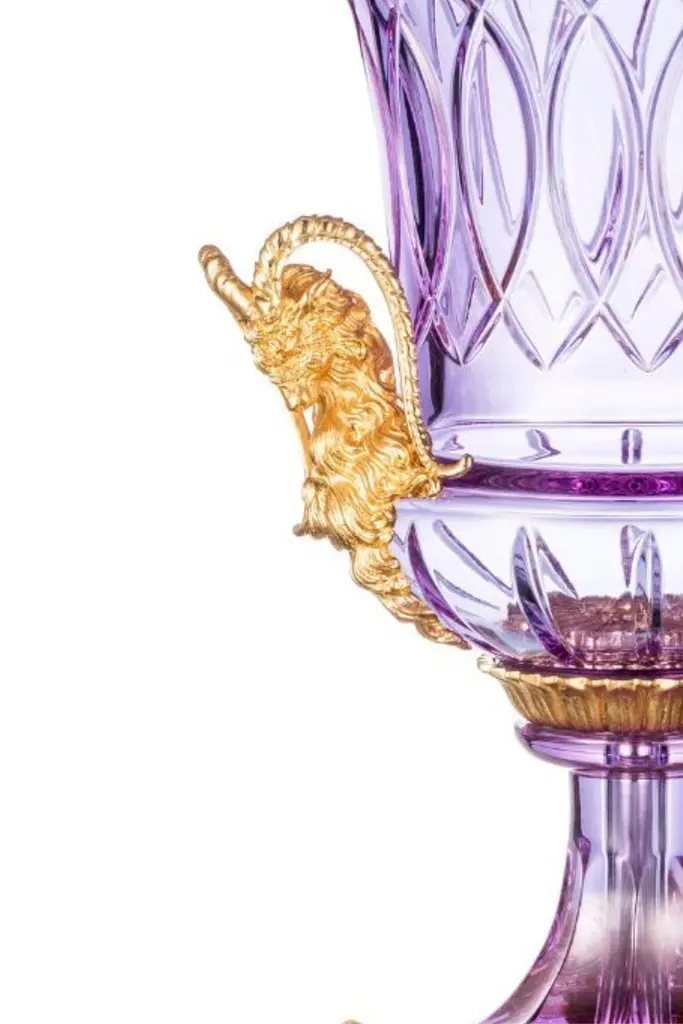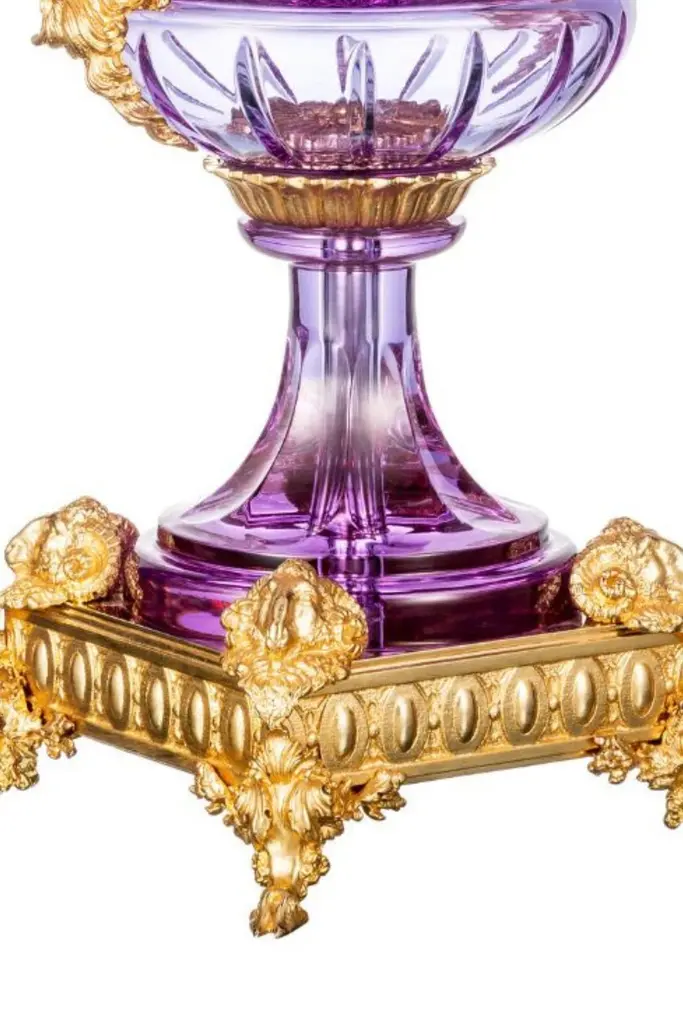 La reggia viola macinata a mano, impreziosita da decorazioni in fusione di bronzo, conferisce un tocco di lusso ed eleganza senza tempo. Gli scintillanti cristalli aggiungono, inoltre, un savoir-faire di raffinatezza e luminosità al classico design. Ogni dettaglio di questa creazione è frutto di lavorazioni artigianali di alta qualità, che conferiscono signorilità che fa risplendere ogni ambiente.