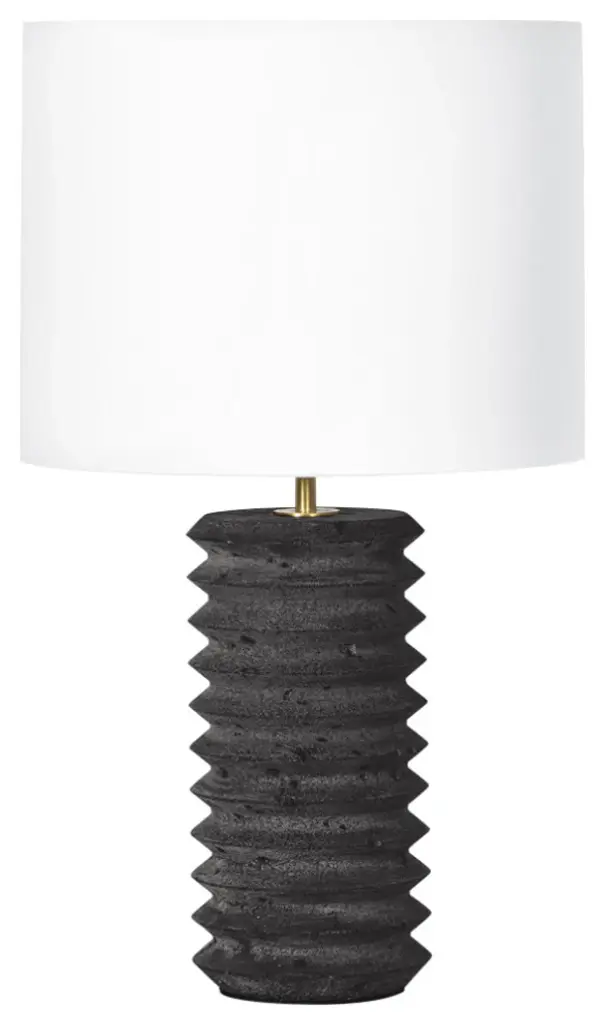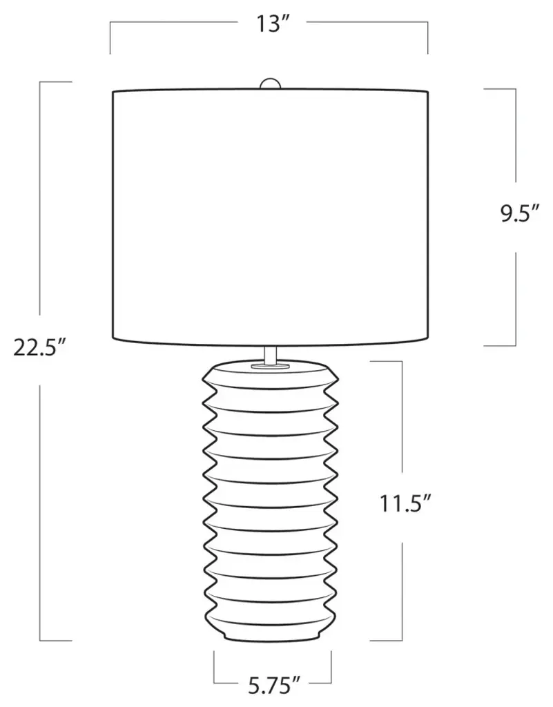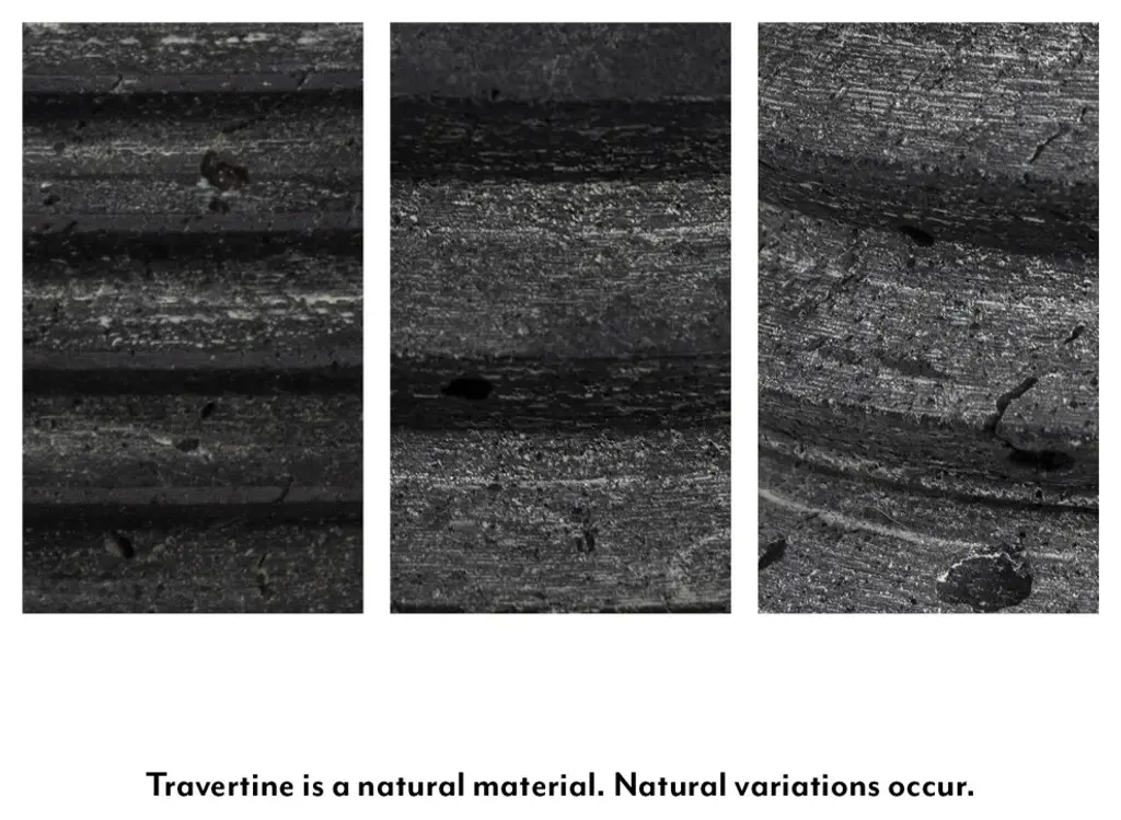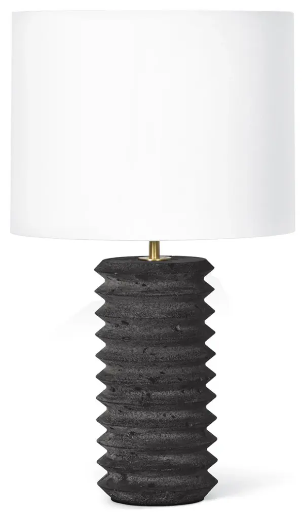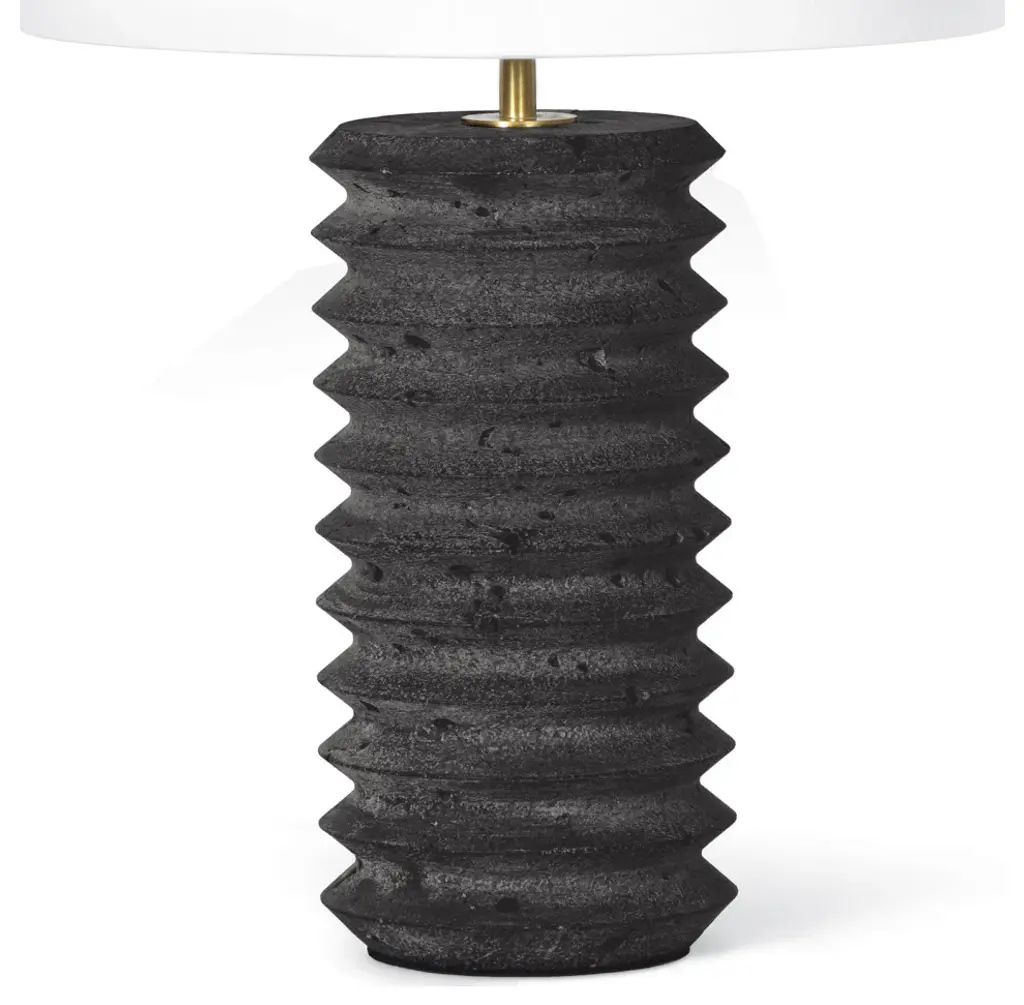 Regina Andrew Noir Column Travertine Lamp; Dimensions 13W x 22.5H x 13D; Uses one maximum 150 Watt E26 Base Bulb (Not Included). CSA/UL Certified. Dry rated. Plug-in