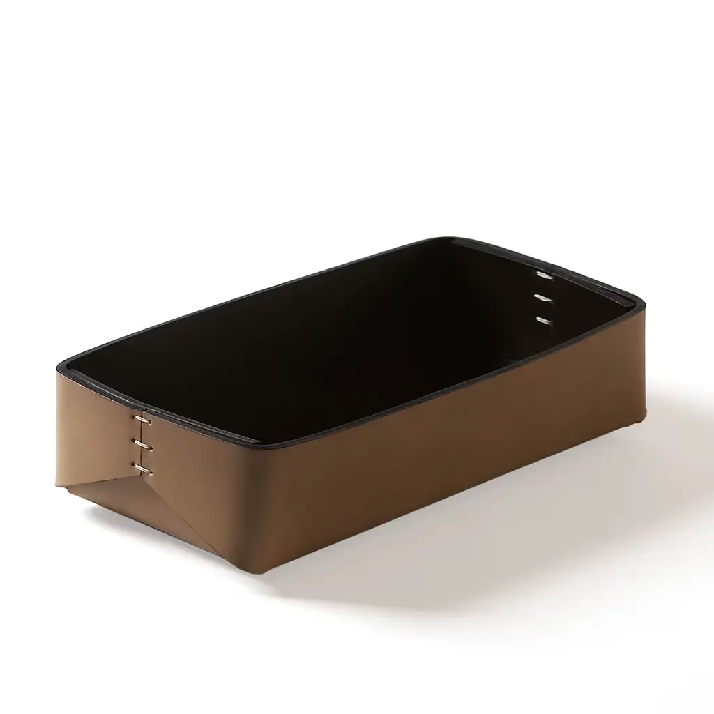 Luxury and simplicity effortlessly coexist in this superb rectangular vide poche crafted from a single two-layer sheet of precious leather. Dyed edges enhance the harmonious profiles of its minimalist silhouette, which is defined by essential cuts and few contrasting manual stitching. A different size variant and multiple color combinations are available, please contact the Concierge for details.