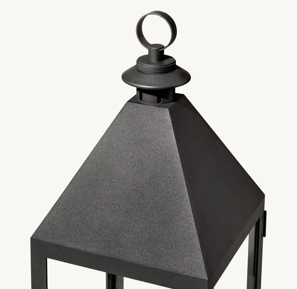 Inspired by the architecture of the world's great cathedrals, designer Jonathan Browning's Reims Lantern is a distilled interpretation. A master of reimagining classic forms, Browning employs broad glass panels to showcase a pillar candle's glow, while the frame's strong lines rise up to meet the sloping roof.