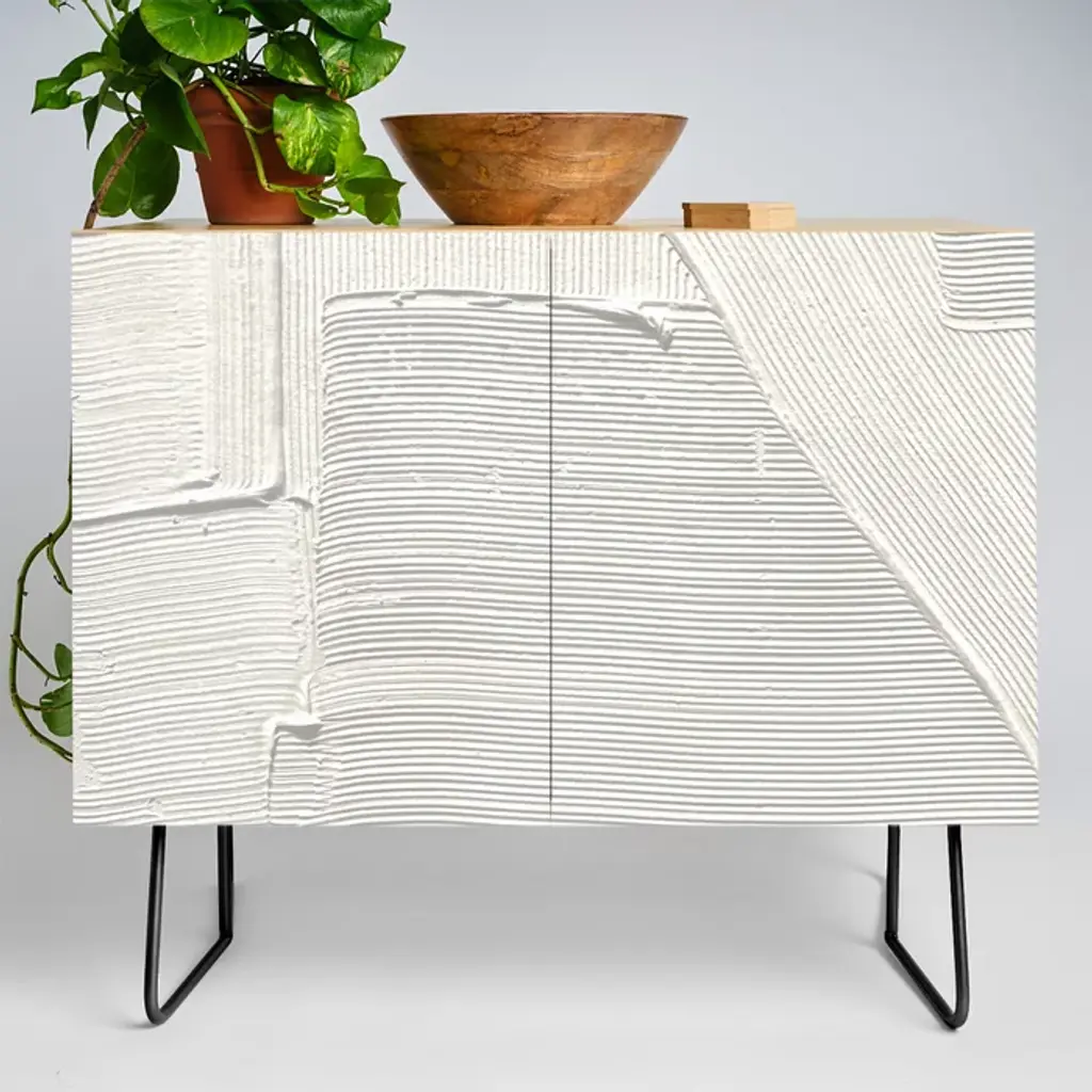 Relief [1]: An Abstract, Textured Piece In White By Alyssa Hamilton Art Credenza