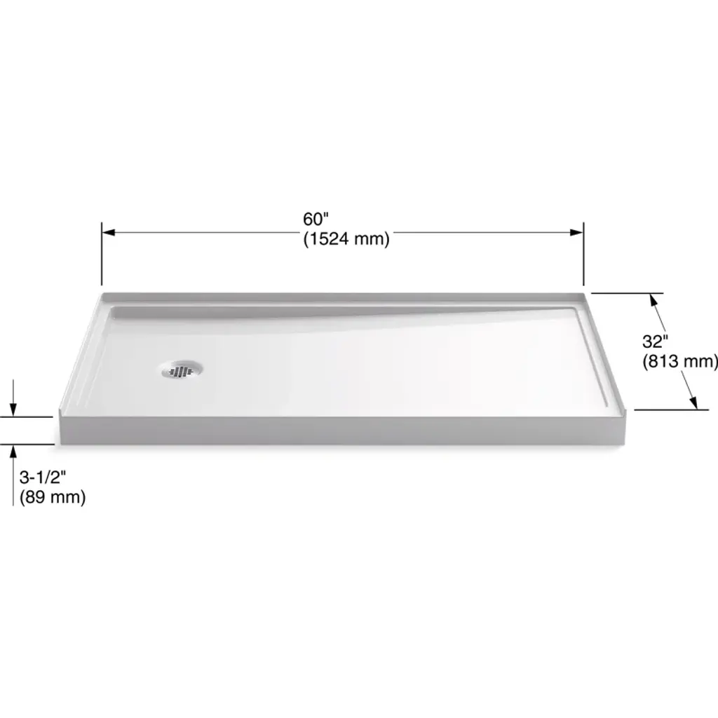 This Kohler relies on a 60" x 32" single-threshold shower base with a left-hand drain providing the reassurance of a low step-over threshold for easy access to your shower. A water containment bead along the threshold serves to prevent water from escaping onto the bathroom floor. Durable acrylic construction eliminates any flex when stepping into the shower and allows for quick, easy installations.