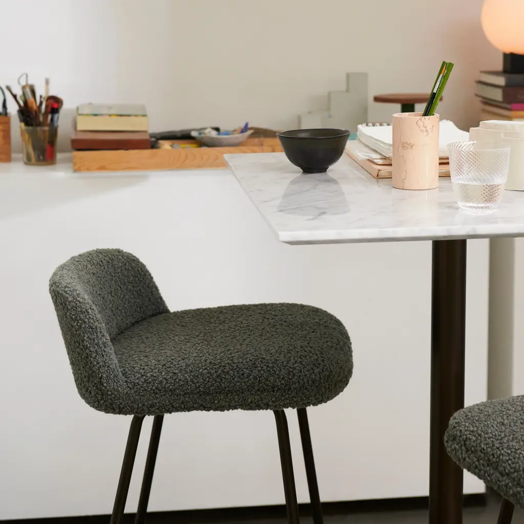 In a completely upholstered version with an added seat cushion, &Tradition expands on its lowback stool model from the Rely family. With a choice of bar or counter height, it features designer Hee Welling’s update of a molded shell seat made from recycled plastic. Equally apropos in a workspace, hospitality venue or the home, it has a compact footprint with its roomy proportions clad in a premium textile or leather and steel tube legs in either black or bronzed finish.