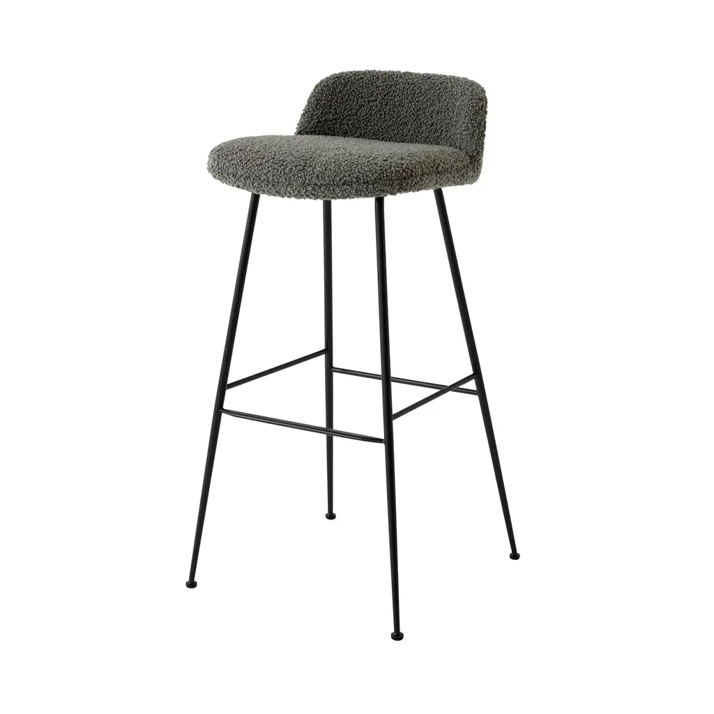 In a completely upholstered version with an added seat cushion, &Tradition expands on its lowback stool model from the Rely family. With a choice of bar or counter height, it features designer Hee Welling’s update of a molded shell seat made from recycled plastic. Equally apropos in a workspace, hospitality venue or the home, it has a compact footprint with its roomy proportions clad in a premium textile or leather and steel tube legs in either black or bronzed finish.