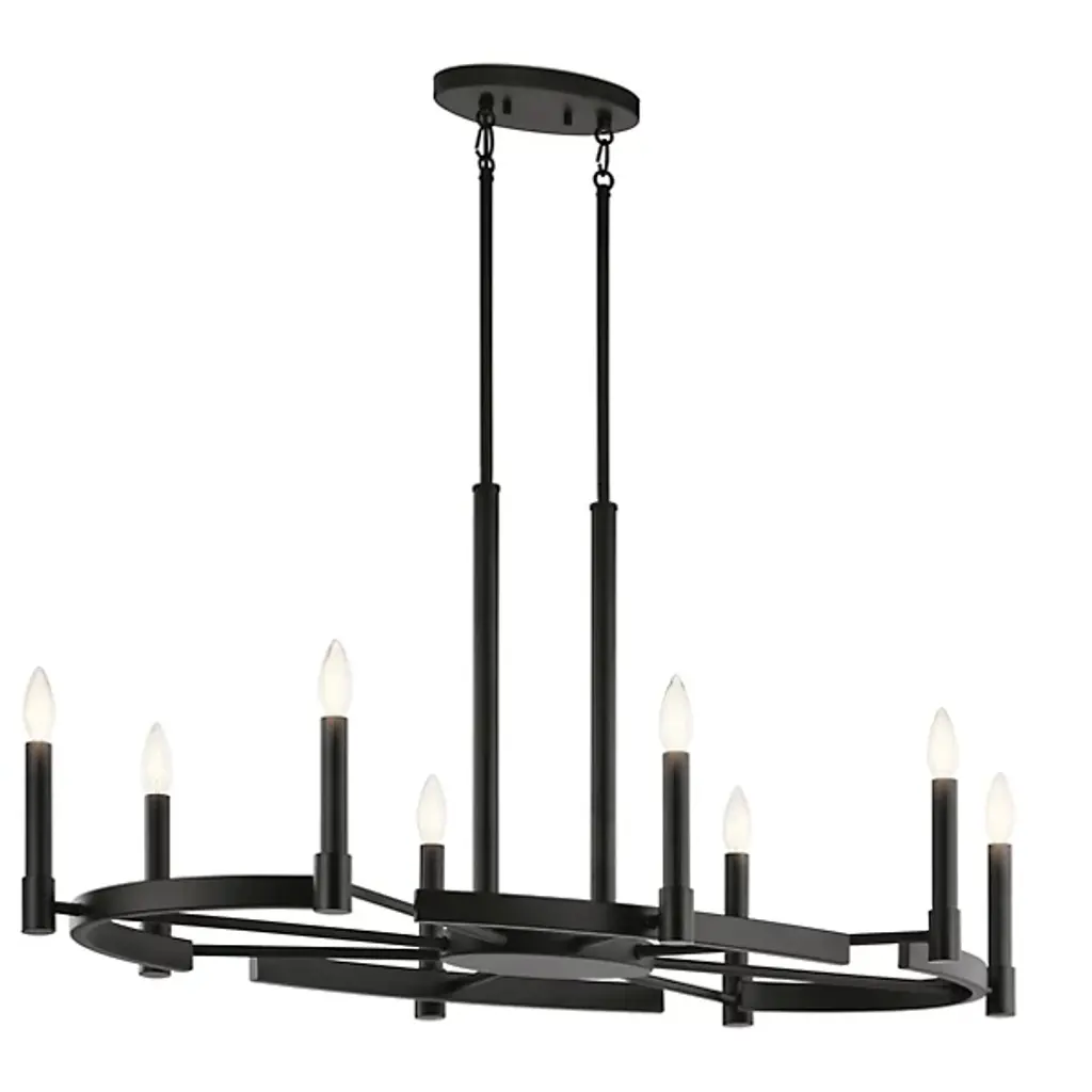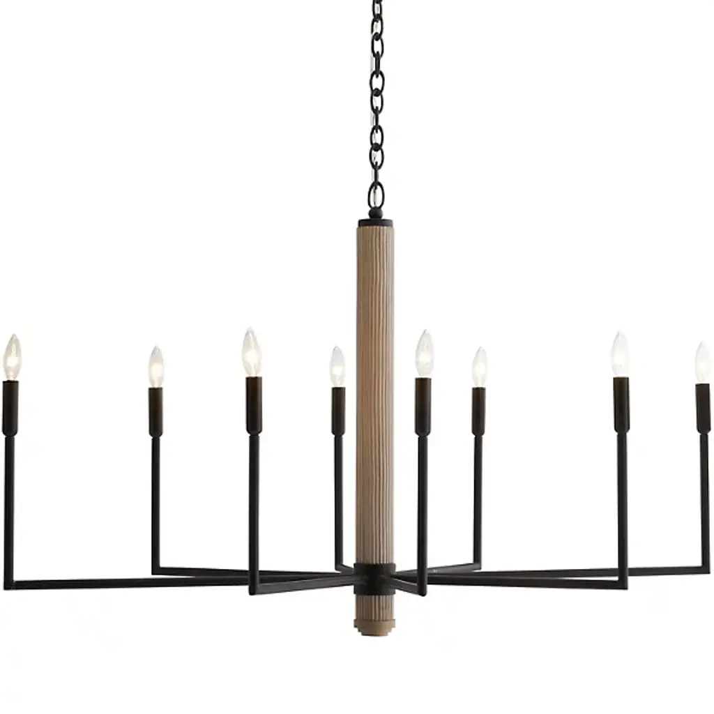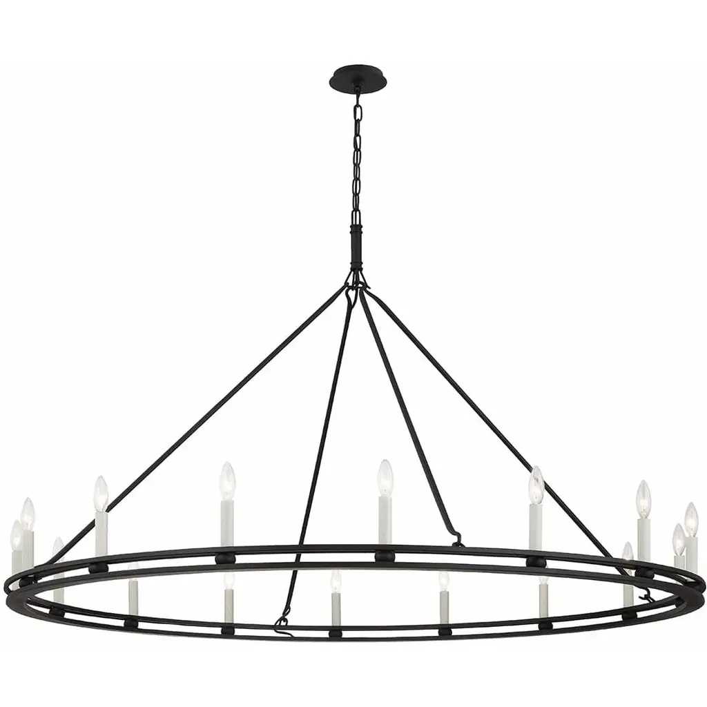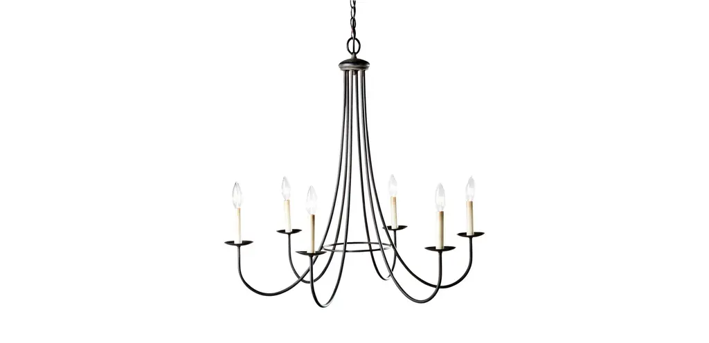 Inspired by candelabra chandeliers once common in the great rooms and dining halls of America's historic lodges, the Remington Lighting Collection makes a grand statement in the modern home. This chandelier's forged ring is held in place by distinctive rods and links, and the candle-style lights provide a warm, inviting glow.