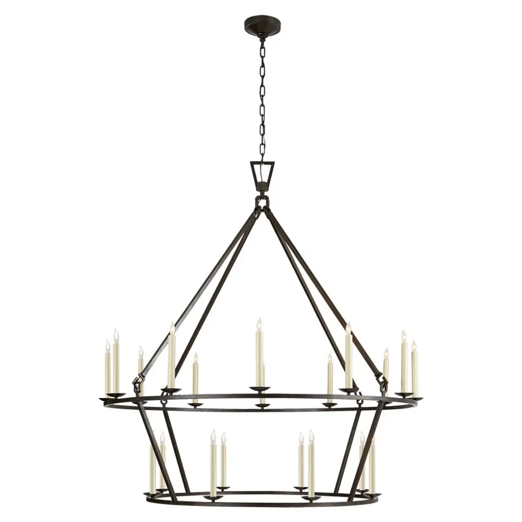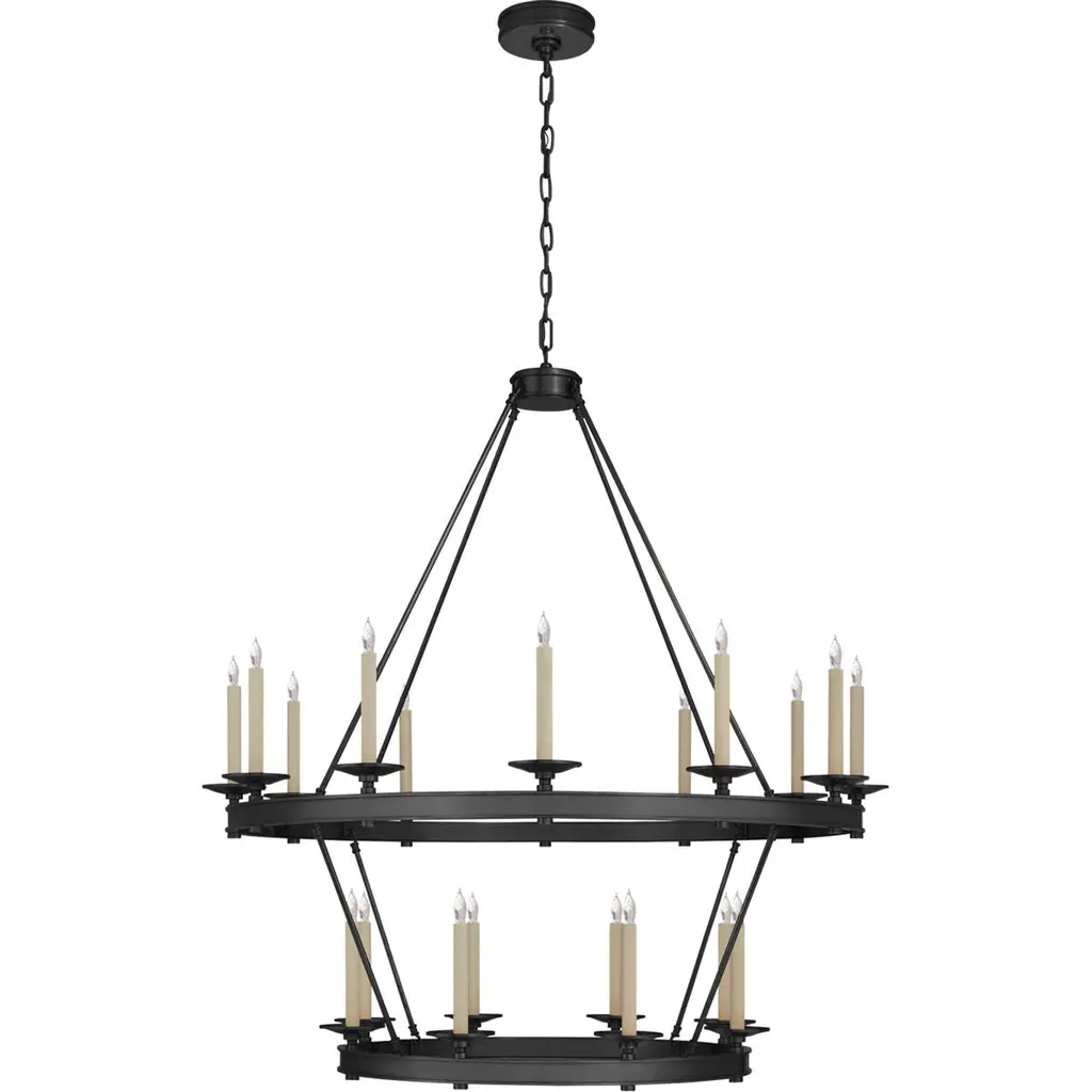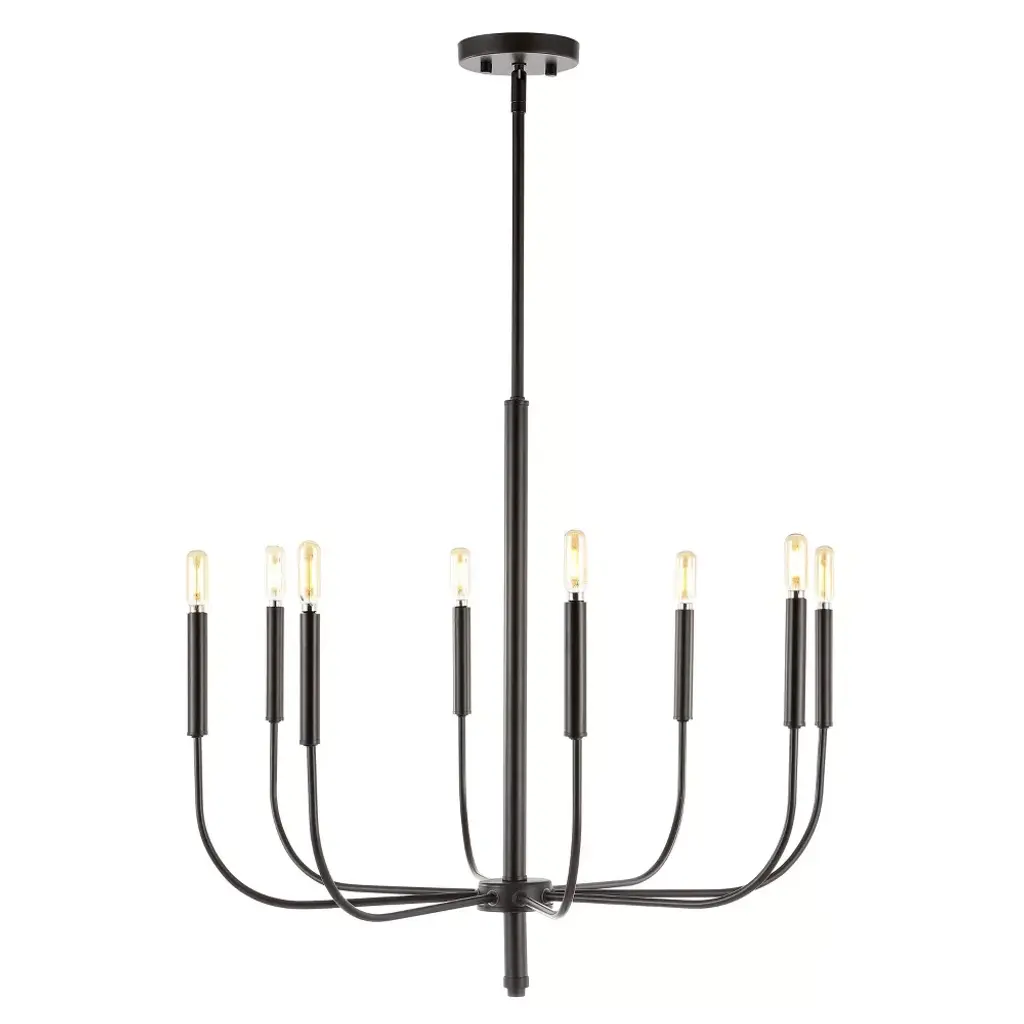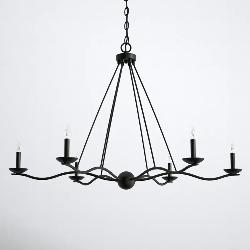 Inspired by candelabra chandeliers once common in the great rooms and dining halls of America's historic lodges, the Remington Lighting Collection makes a grand statement in the modern home. This chandelier's forged ring is held in place by distinctive rods and links, and the candle-style lights provide a warm, inviting glow.