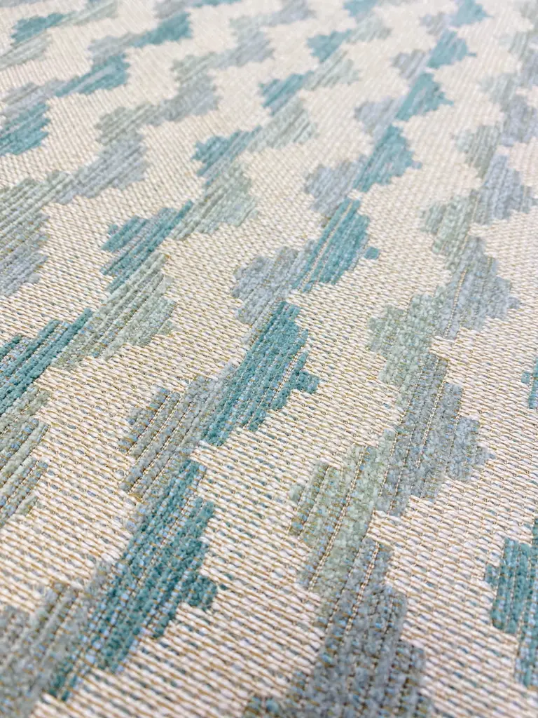 Remnant Schumacher Roebuck Performance Indoor Outdoor Mineral Aqua Seafoam Green Geometric Water & Stain Resistant Upholstery Fabric