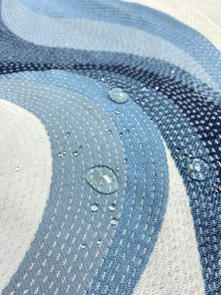 54” wide Thibaut Passage glacier stain resistant upholstery fabric in navy blue and cream. Price is per yard. Flammability Cal TB 117 - Pass UFAC Class 1 NFPA 260 - Pass Tested to US standards ACT Fade Resistant Meets indoor standards Warranty 2-year limited warranty Cleaning code W Method Do not dry clean- use hot water extraction Bleach Do not use bleach Washable Do not machine wash Tumble Dry No - air dry only Steam Light steam only Iron Not recommended