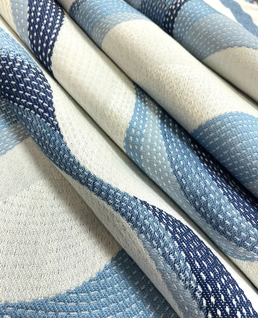 Remnant Thibaut Passage Glacier Stain Resistant Waterfall Navy Blue Cream Upholstery Fabric