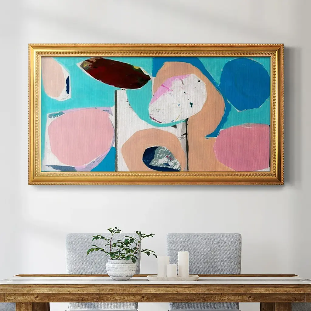 Bring home the captivating allure of abstract art with "Ren," a hand-produced acrylic painting on archival giclee paper. This unique piece, encased in a sleek , gray, solid pinewood frame and tempered glass, effortlessly elevates your modern living space.