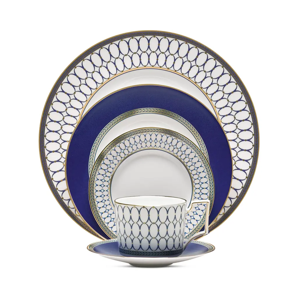 Express yourself every day with the bold patterns and rich colours of Renaissance Gold collection. Steeped in over 260 years of Wedgwood heritage, this collection adds bold crimsons and gold accents to your morning breakfast or casual dinners with its decadent gilding and expressive neoclassical motifs. Featuring Florentine accents and the unmistakable Wedgwood cameo shape, this collection has over 260 years of patterns that have inspired it. This 5 Piece Set includes a dinner plate, salad plate, side plate, teacup and saucer, all expertly crafted from fine bone china to offer superior strength and elegant translucency. Features