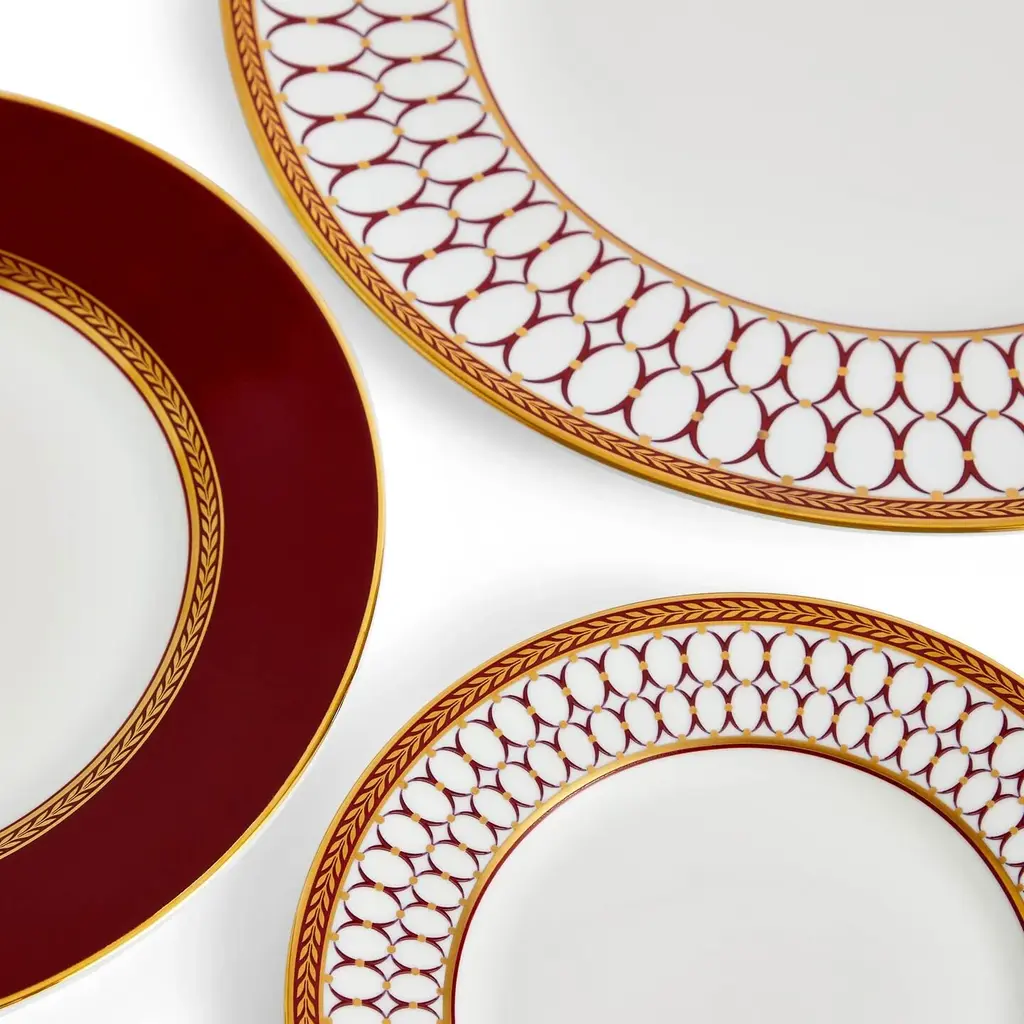 Express yourself every day with the bold patterns and rich colours of Renaissance Gold collection. Steeped in over 260 years of Wedgwood heritage, this collection adds bold crimsons and gold accents to your morning breakfast or casual dinners with its decadent gilding and expressive neoclassical motifs. Featuring Florentine accents and the unmistakable Wedgwood cameo shape, this collection has over 260 years of patterns that have inspired it. This 5 Piece Set includes a dinner plate, salad plate, side plate, teacup and saucer, all expertly crafted from fine bone china to offer superior strength and elegant translucency. Features
