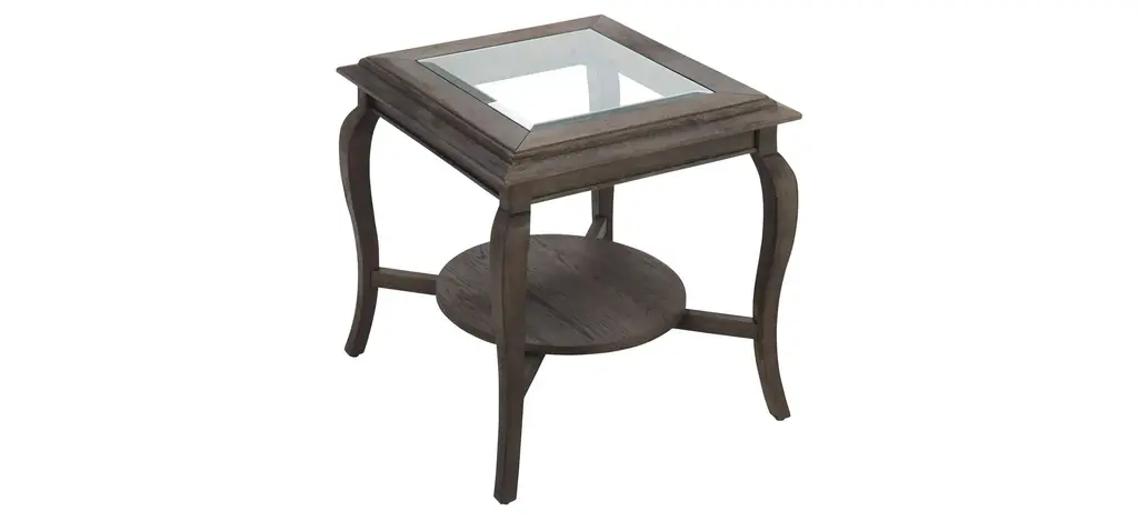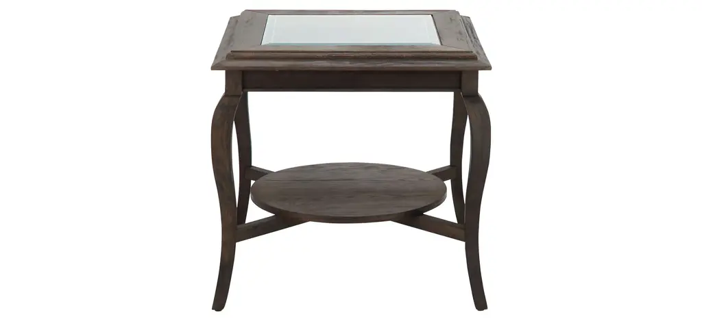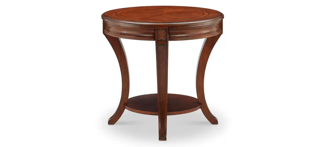 Add a classic touch to your living space with the Renson end table. Its round surface and curved legs add visual appeal, while the glass top provides an easy-to-clean surface. Plus, the coffee bean wood finish lends a hearty and rich look.