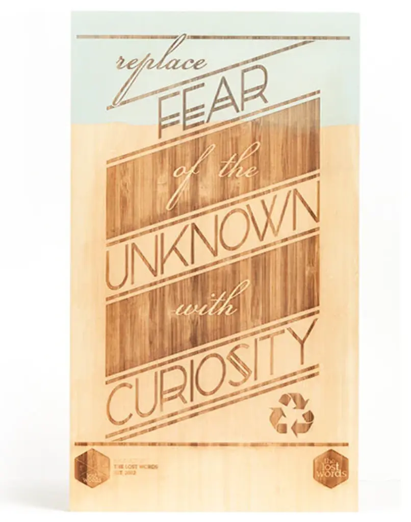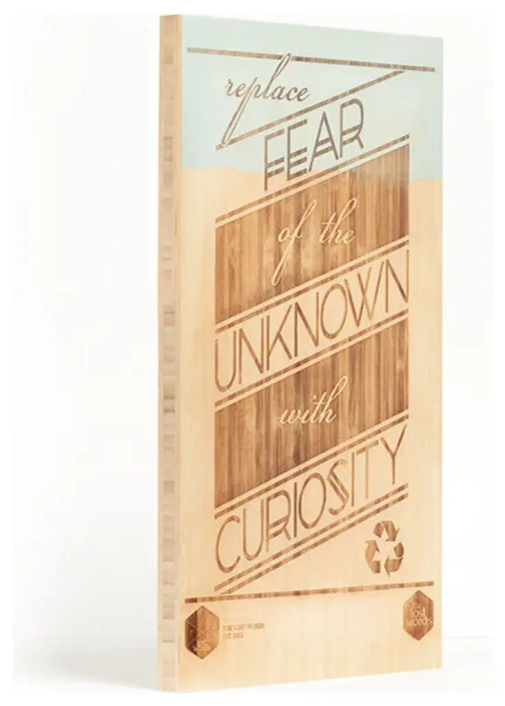 Laser Etched onto a hand sanded and painted board this typographic design will look great hanging on your wall. Produced from sustainably managed bamboo plantations by an FSC certified operator this board is as good for the environment as it is for you. Board comes with routed hanging system in rear which suits all hooks and nails. Dimensions 400mm x 230mm x 15mm.
