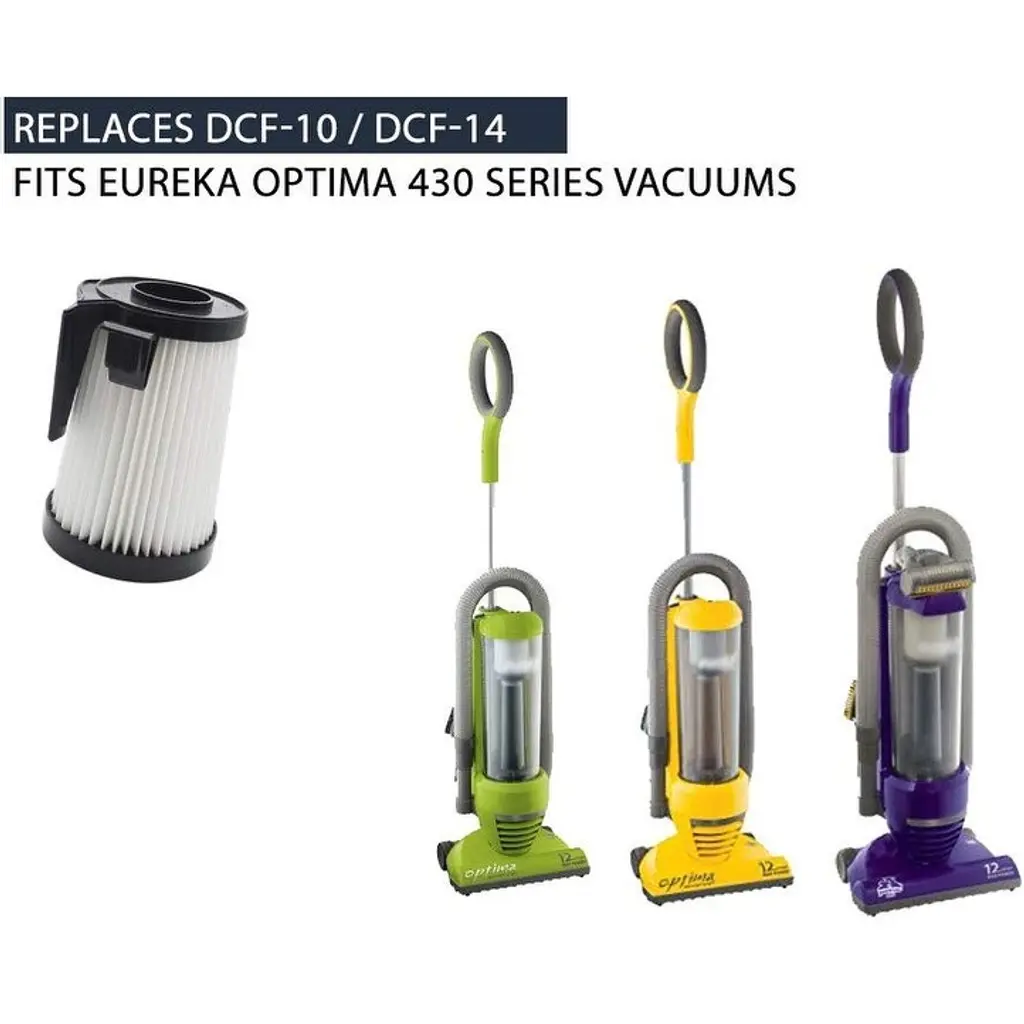 This allergen filter is designed to replace Eureka DCF-10 and DCF-14 filters. It's a quick and easy way to get your upright vacuum cleaner the suction power it needs. If you need to service your cleaning supplies or machines, GoldTone filters are a great place to start!While we aim to supply accurate product information, it is sourced by manufacturers, suppliers and marketplace sellers, and has not been provided by Overstock.