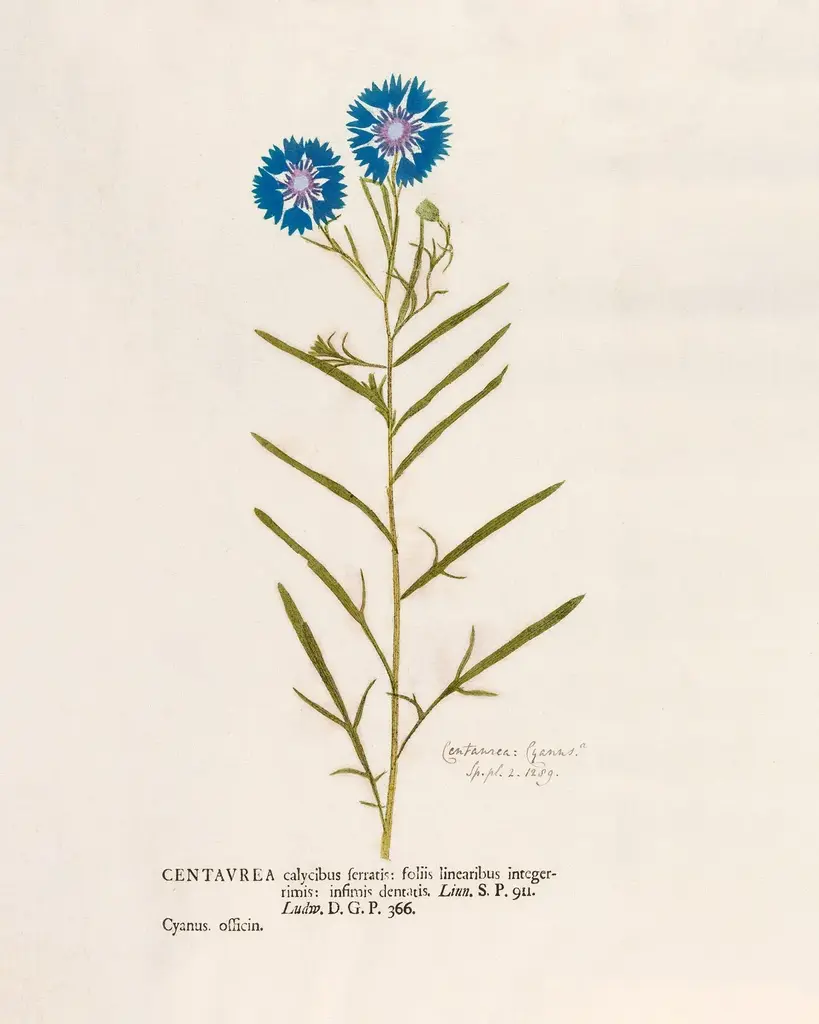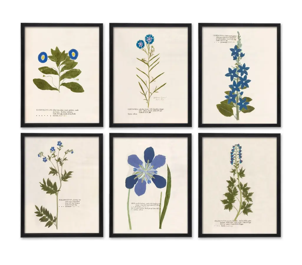 Reproduction 18th Century Vintage Botanical Set With Blue Flowers - 11" X 14"