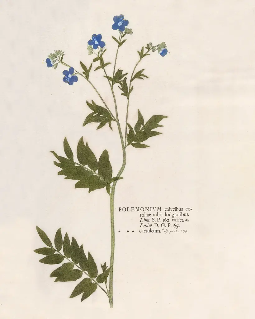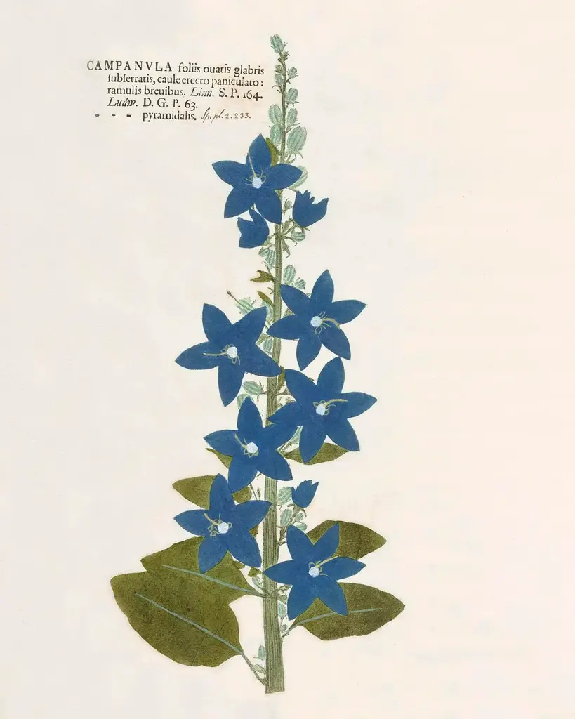 Reproduction 18th Century Vintage Botanical Set With Blue Flowers