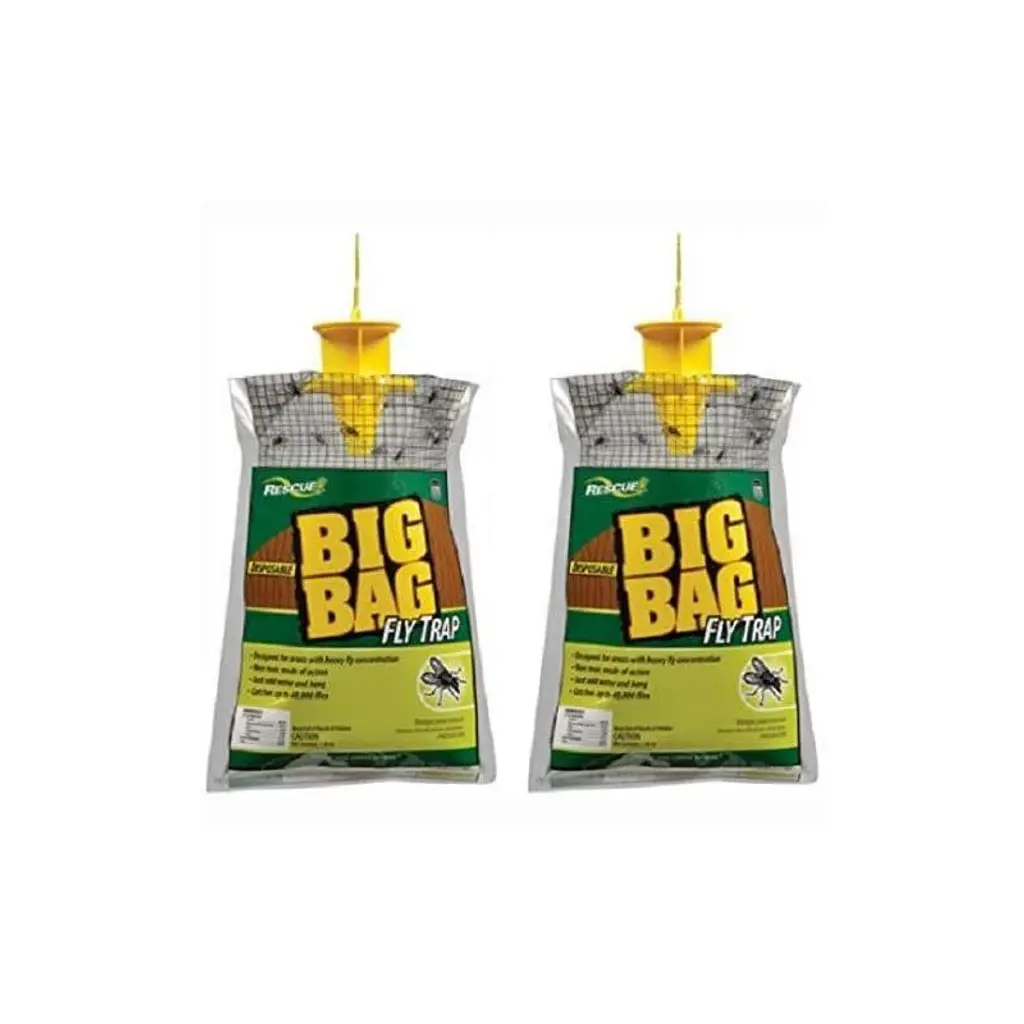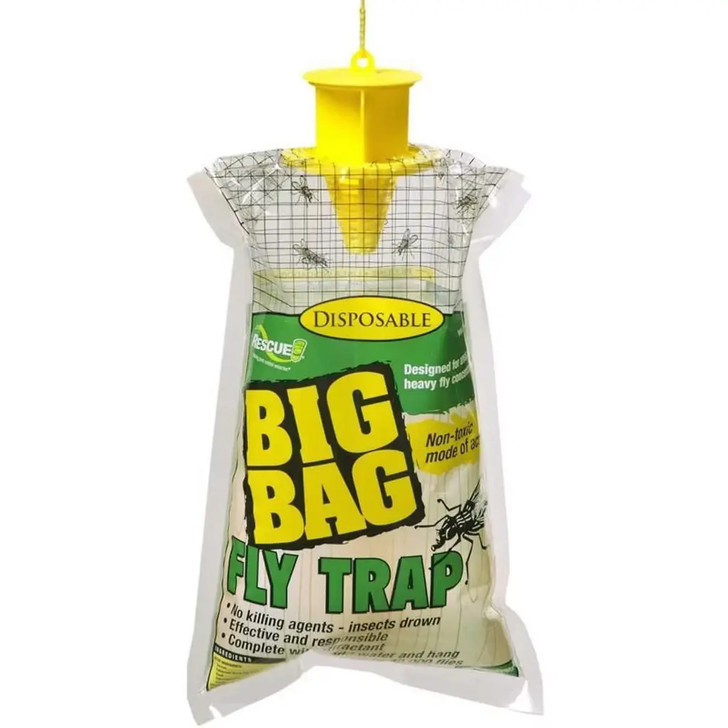 RESCUE! Big Bag Fly Trap has twice the capacity of our Disposable Fly Trap, catching flies in bulk in areas with large fly populations, such as barns, stables, and animal pens. Once activated, these traps have a strong odor. Only use this trap outdoors, and at least 20 feet away from any living areas.