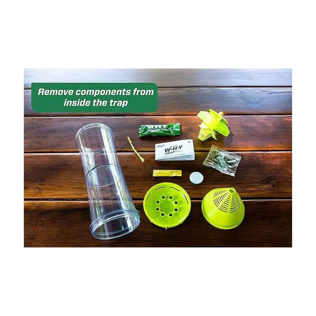 (10 TRAPS) The Rescue WHY (Wasp, Hornet, Yellow Jacket) non-toxic reusable trap uses no pesticides! Catches 19 species of stinging pest insects in one trap! Environmentally responsible, no killing agents � insects die naturally, requires no additional food bait. In Spring, catches queens before they build nests; catches workers from summer through fall. Will not harm beneficial insects. Double-chambered, triple attractant design prevents wasps, hornets and yellow jackets from escaping. Upper chamber is filled with liquid and the insect drowns. Lower chamber is designed to prevent escape and insect dehydrates. Best to place trap at least 20 feet from the nest and away from your activity site. Durable construction holds up for multiple seasons. Comes with 2-week attractant supply. Shelf life: Does not expire. Use with Rescue Universal Rod Trap Stand. Made in USA. Manufacturer: Sterling International This trap catches: 5 species of paper wasps: Paper Wasp (Polistes fuscatus), European Paper Wasp (Polistes dominulus), Red Wasp (Polistes annularis), Golden Paper Wasp (Polistes aurifer), Paper Wasp (Polistes metricus); 2 types of hornets: Bald-faced Hornet (Dolichovespula maculata), European Hornet (Vespa crabro); 12 species of yellow jackets: Aerial Yellow Jacket (Dolichovespula arenaria), Black Jacket (Vespula consobrina), California Yellow Jacket (Vespula sulphurea), Common Yellow Jacket (Vespula vulgaris), Eastern Yellow Jacket (Vespula maculifrons), Forest Yellow Jacket (Vespula acadica), German Yellow Jacket (Vespula germanica), Northeastern Yellow Jacket (Vespula vidua), Prairie Yellow Jacket (Vespula atropilosa), Southern Yellow Jacket (Vespula squamosa), Transition Yellow Jacket (Vespula flavopilosa), Western Yellow Jacket (Vespula pensylvanica).