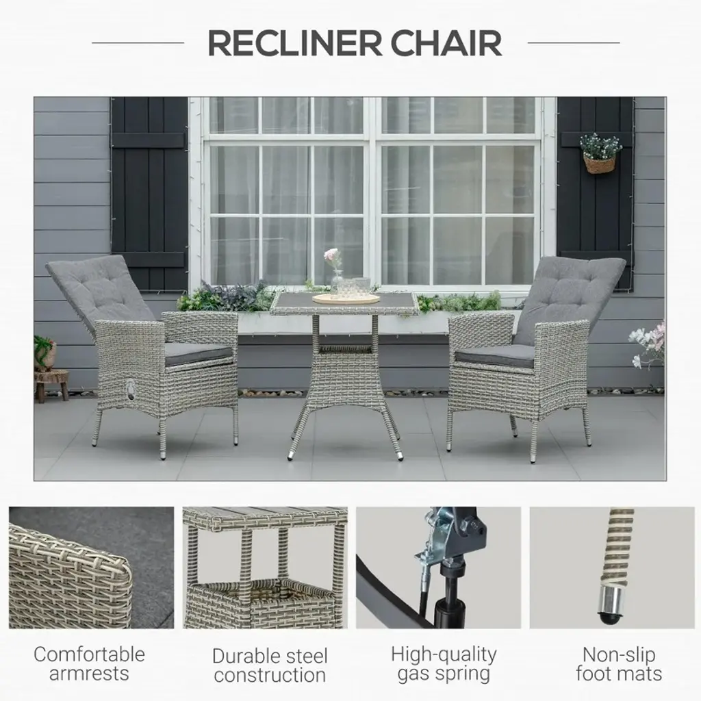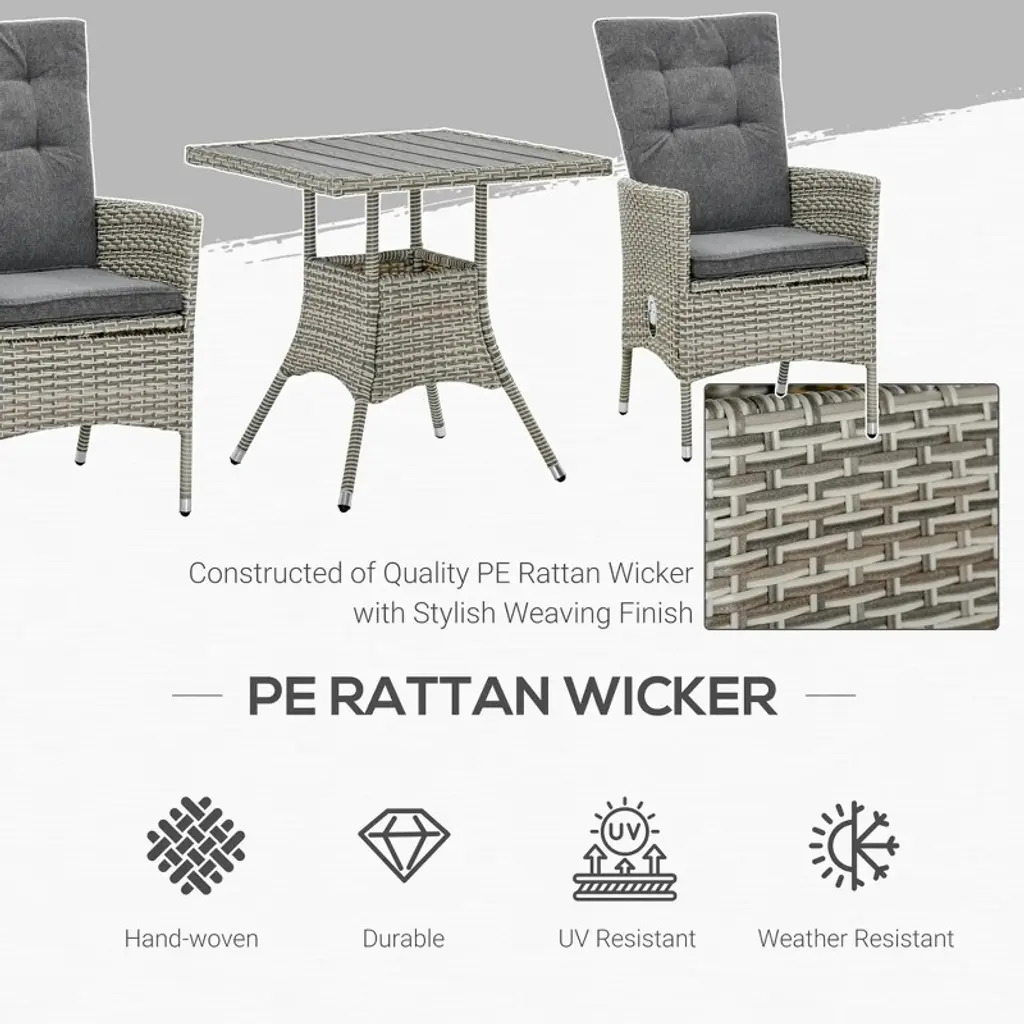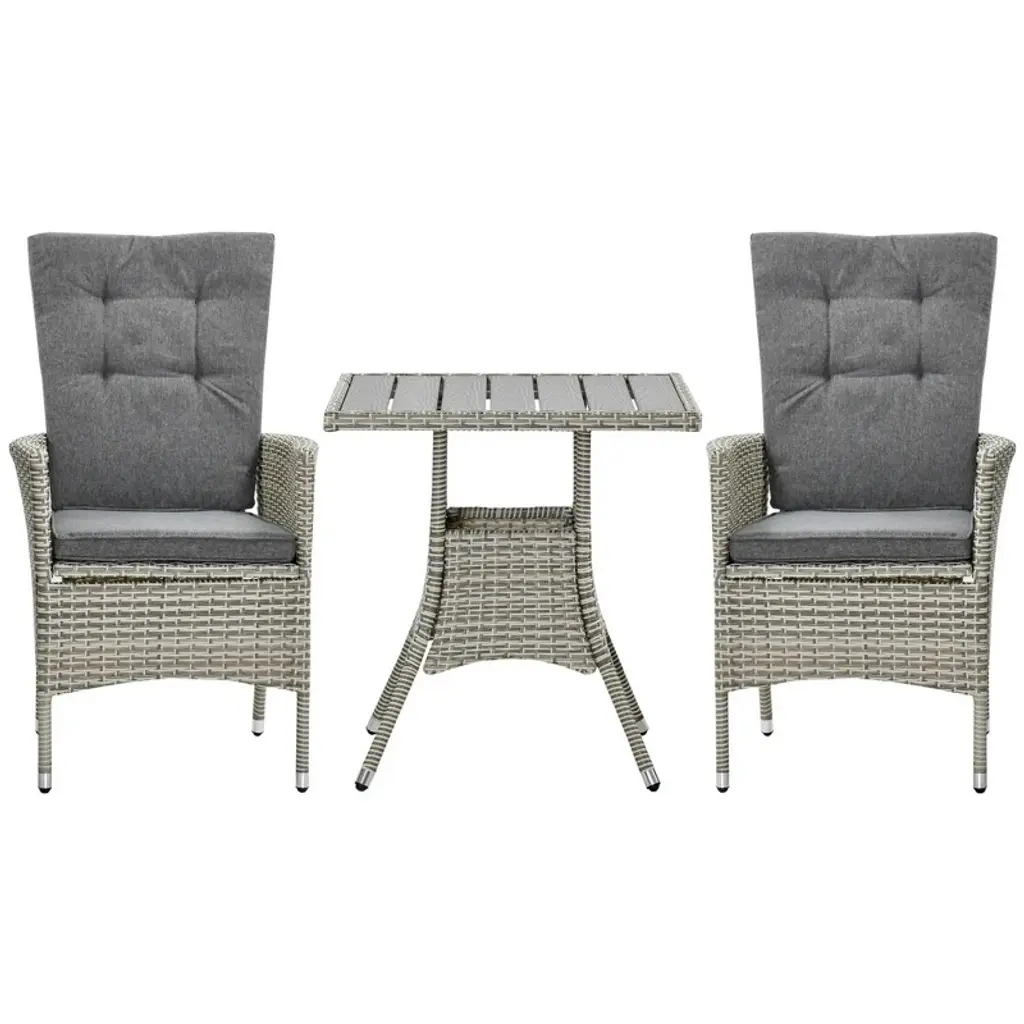 Resenkos 3 Pieces Patio Bistro Set, Two Reclining Wicker Chairs And An Outdoor Coffee Table, Pe Rattan, Gray