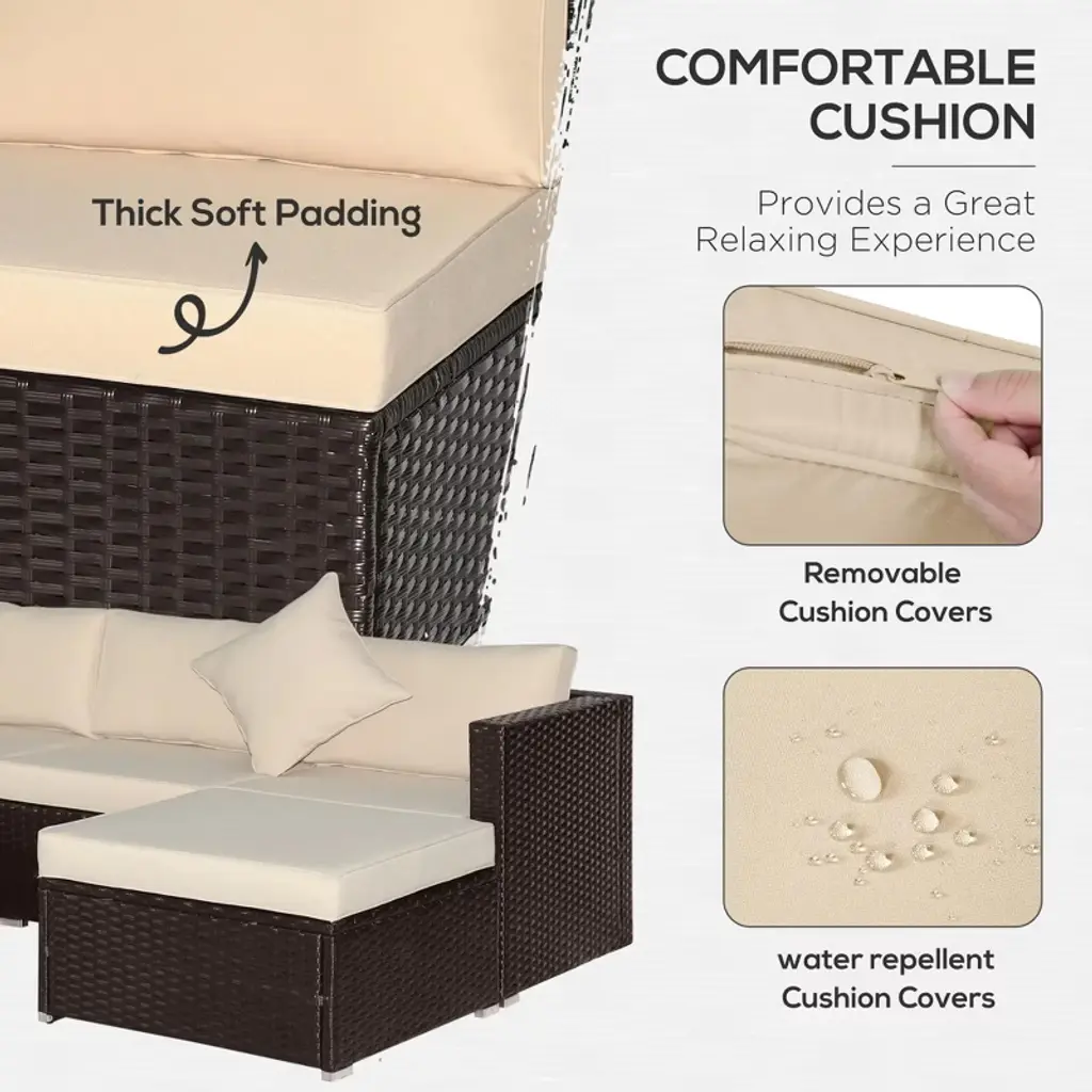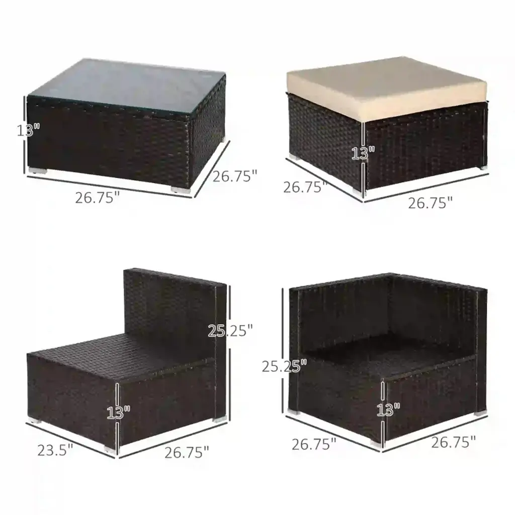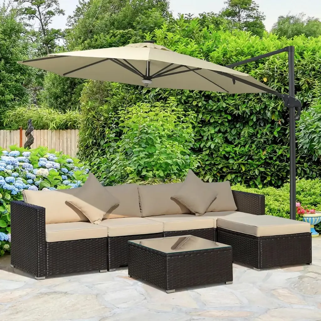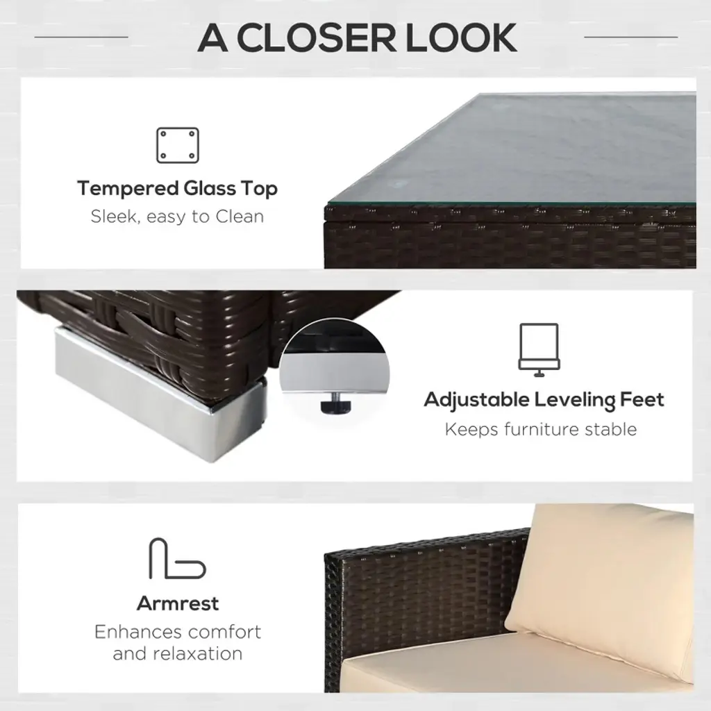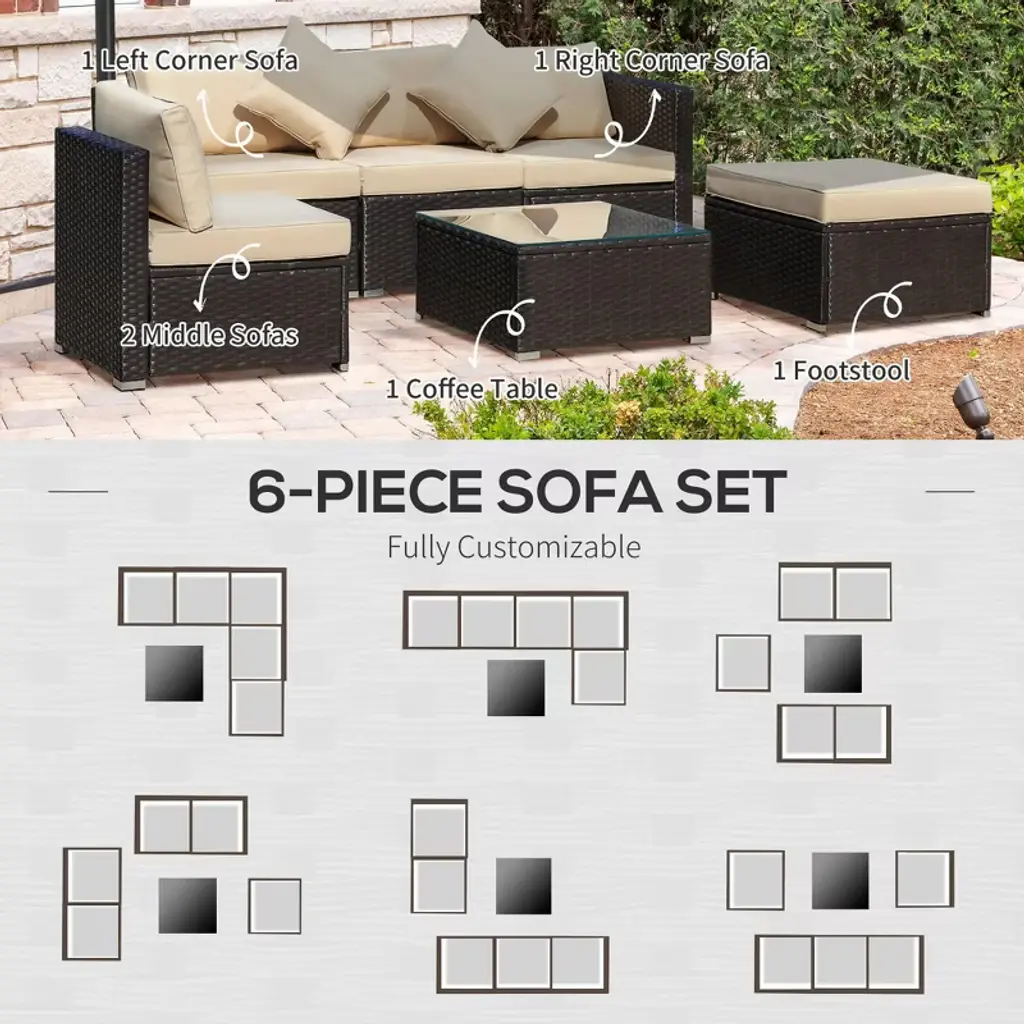 Resenkos 6 Pieces Patio Furniture Set, Pe Rattan, Coffee, Beige