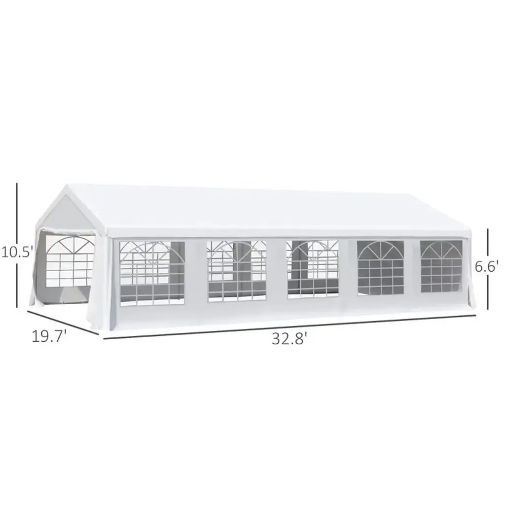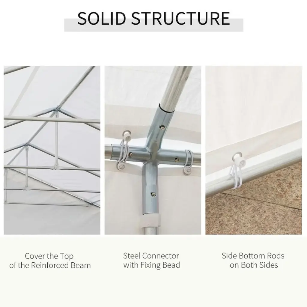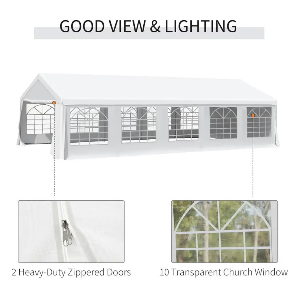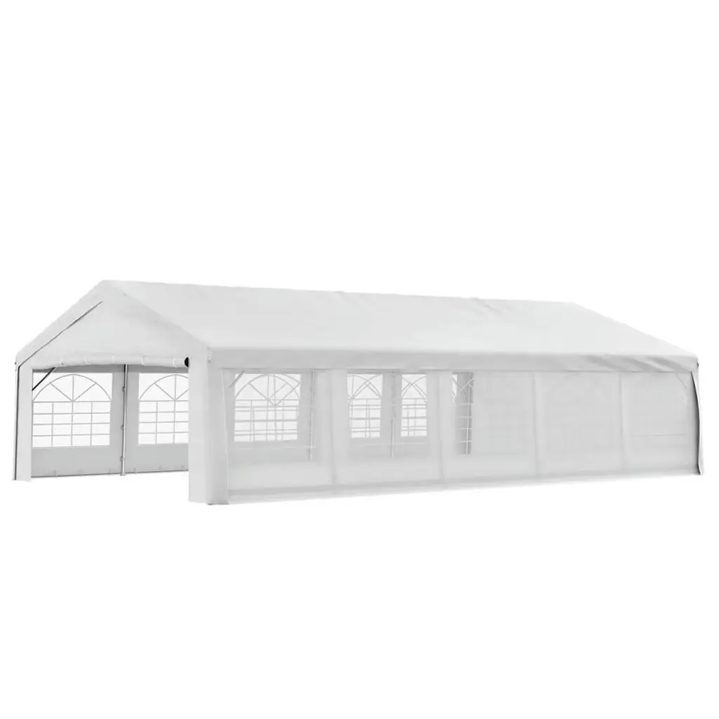 Transform your outdoor space into a versatile haven with our canopy tents. Whether you're hosting a lavish wedding reception, a joyous graduation party, or a cozy backyard barbeque, our canopy tents offer ample space and unparalleled versatility. Designed with a robust galvanized steel frame and UV-resistant polyethylene canopy, these tents provide reliable shelter from the elements while allowing natural light to flood in through stylish cathedral-style windows. Our canopy tents are perfect for more than just social events. They also serve as excellent carports, safeguarding your vehicles, furniture, garden tools, and outdoor project materials from sun damage and weather-related wear and tear. With two zipper doors for quick and easy access, you can enjoy the breeze or create a secure, shaded space as needed. Easy to set up and reinforced with stakes and ropes for stability, our canopy tents are outdoor-ready and built to last. But remember, for safety and longevity, it's best to take them down in bad weather or overnight. Gather your friends and family, measure your site, and create unforgettable memories under the protection of our canopy tents. Resenkos Canopy, Outdoor Canopy Tent,20' x 32' Heavy Duty Party Tent & Carport with Removable Sidewalls and Double Doors, White