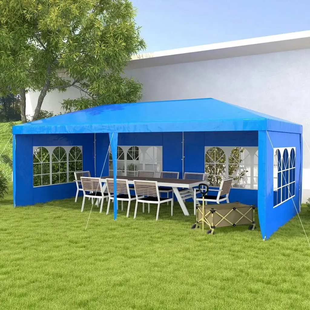Resenkos Canopy, Outdoor Canopy Tent,9.6' X 19' Large Party Tent With 4 Removable Window Sidewalls For Weddings, Picnics, Blue