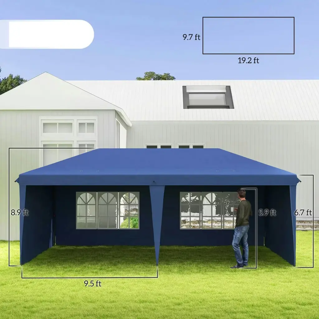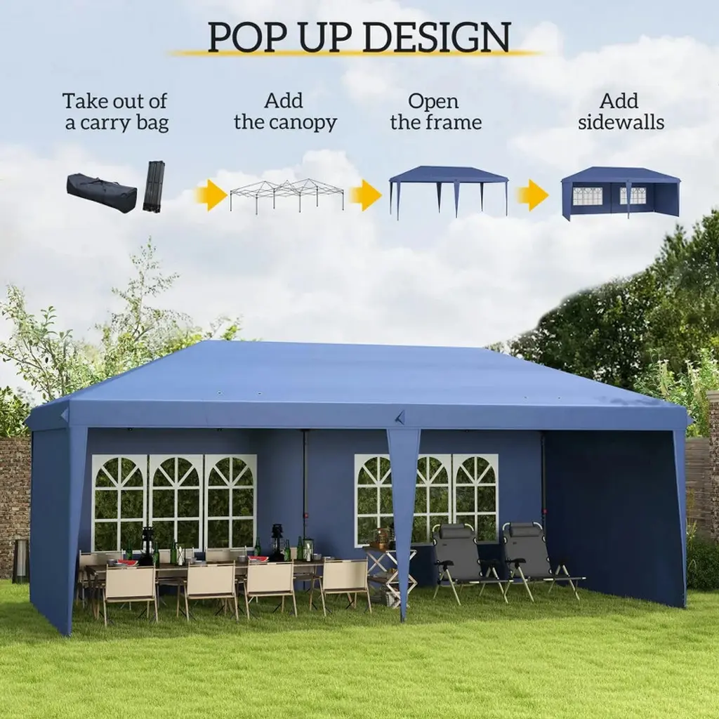 Resenkos Patio Garden Pergola, Pergola Canopy,10' X 20' Pop Up Canopy Tent With 4 Sidewalls, Instant Gazebo With Carry Bag, Blue