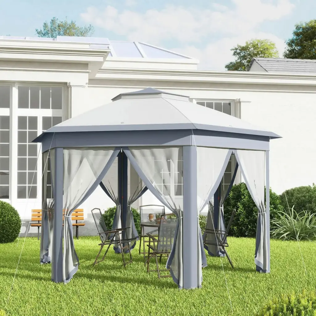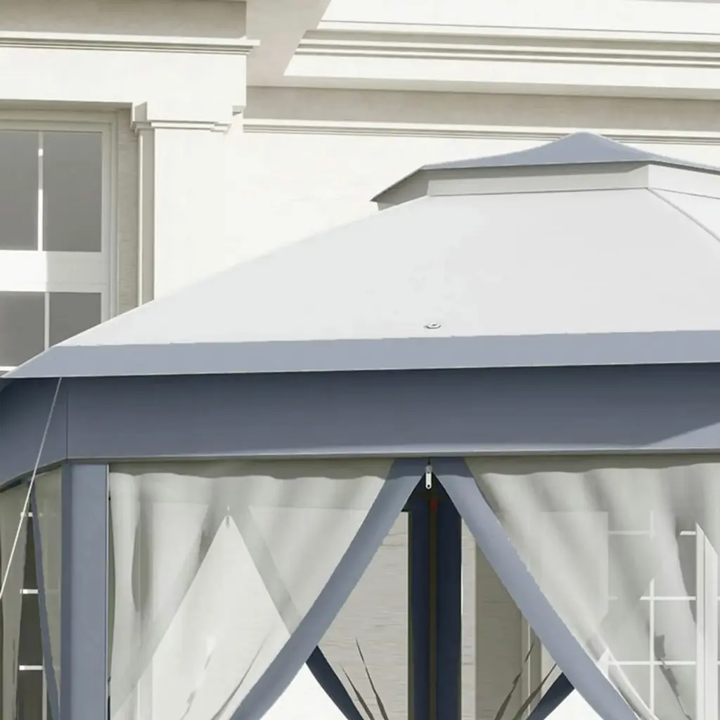 Resenkos Patio Garden Pergola, Pergola Canopy,13' X 13' Pop Up Gazebo Hexagonal Canopy Shelter With 6 Zippered Mesh Netting Gray