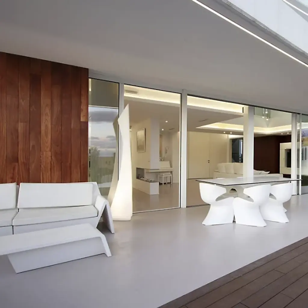 Drawing inspiration from the Japanese art of Origami, the Rest Table Sofa exudes a sense of freshness with its striking silhouette of simple lines and corners in a sleek, avant-garde design. This coffee table complements modern sofas while spreading contemporary appeal to living and receiving areas. Highly durable and 100% recyclable polyethylene resin makes up the genetic profile of this piece, giving it the ability to tackle the toughest weather conditions without affecting looks, quality, or functionality. This table can also perform double-duty as a bench for spontaneous extra seating. The Rest Table Sofa comes in several colors, two finishes and is robust enough for the outdoors and sophisticated enough for modern interior spaces.