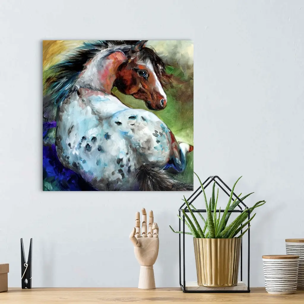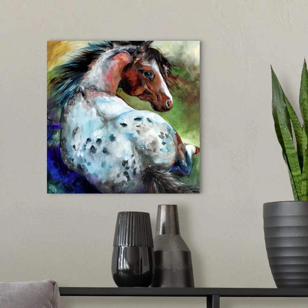 An adorable appaloosa colt, resting in the shade and keeping a watchful eye on mom.