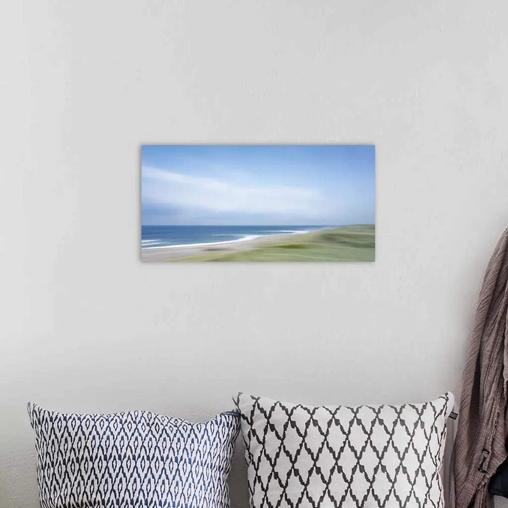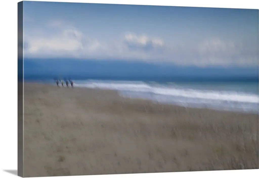 Artistically blurred photo. Strong winds from the sea climb restlessly over the dunes.