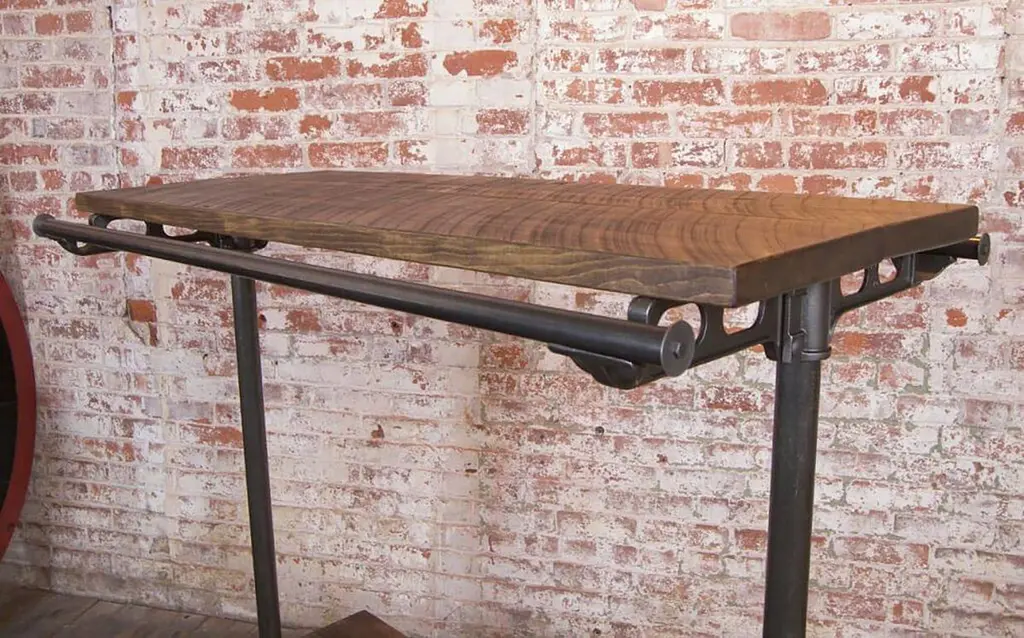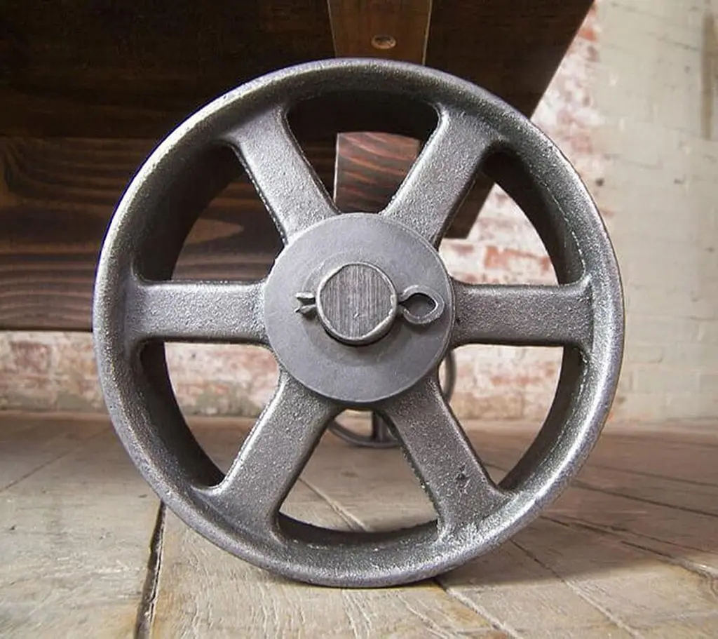 Retail Garment Hanging Rolling Rack / Cart On Castors, Cast Iron And Wood