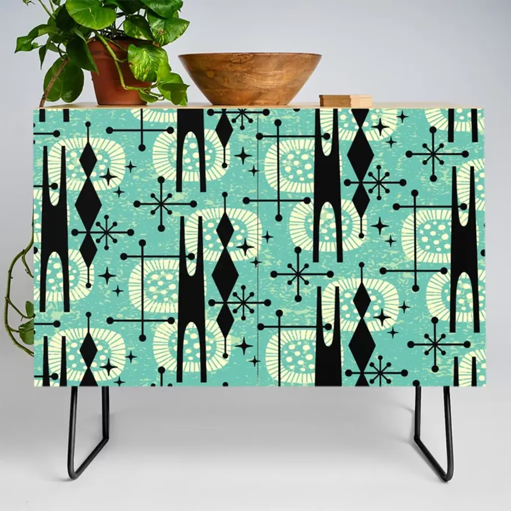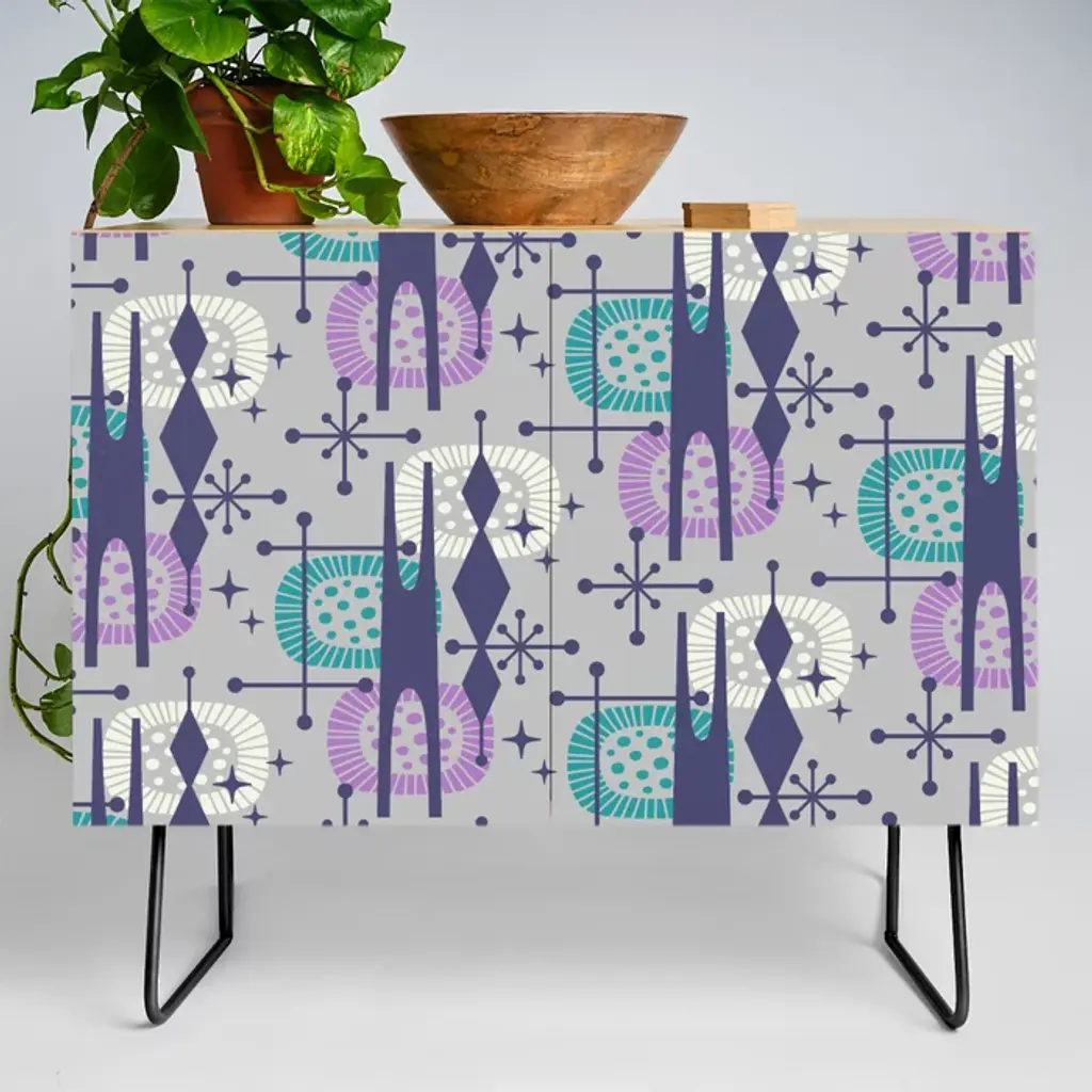 Retro 1950s Style Mid Century Modern Atomic Wing Pattern 834 Googie Orange And Gray Credenza