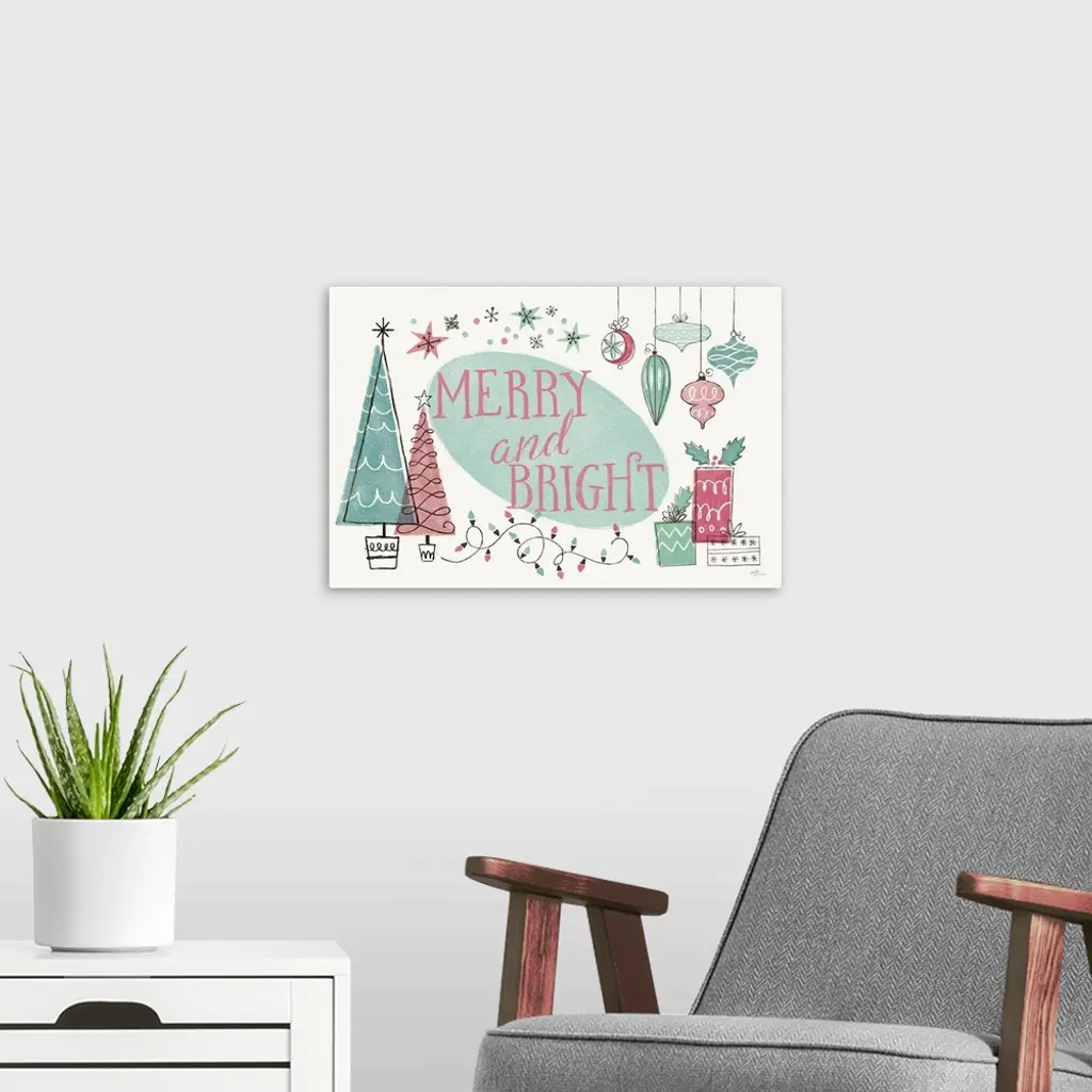 Retro Christmas I Bright wall art for home and office decor. Discover canvas art prints, photos, mural, big canvas art and framed wall art in GreatBigCanvas.com's varied collections.