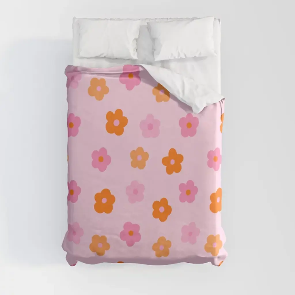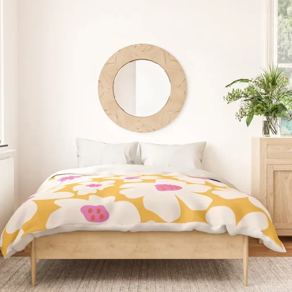 Retro Daisy - Yellow, Pink And White Duvet Cover
