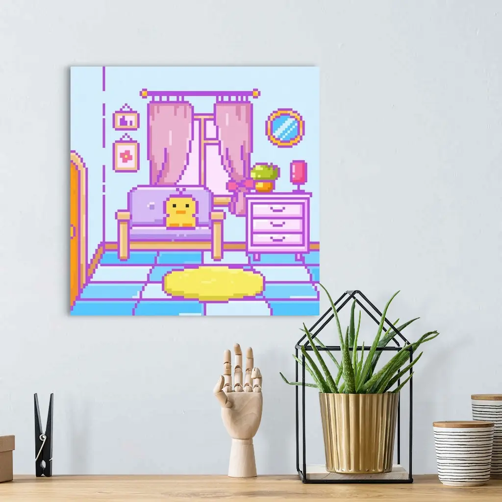 Retro Duck In Living Room Pixel Art wall art for home and office decor. Discover canvas art prints, photos, mural, big canvas art and framed wall art in GreatBigCanvas.com's varied collections.