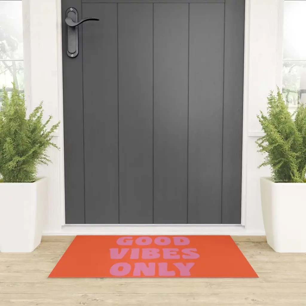 Retro Good Vibes Only Lettering In Pink And Orange Welcome Mat