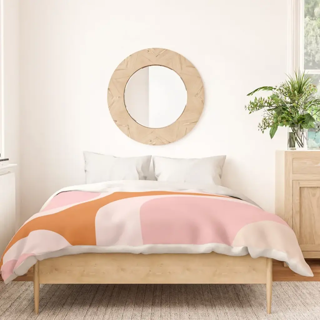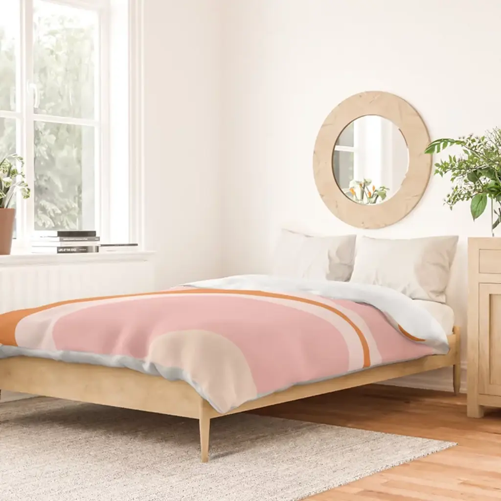 Retro Groove Pink And Orange - Cheerful Abstract Minimalist Pattern Duvet Cover