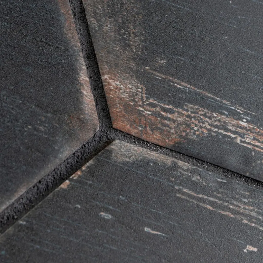 Bring old-style charm to your floors or walls with this tile. The soot-black glaze features finely detailed grain accented in shades of tan, with understated bumps and grooves that give it the look of genuine wood. Imitation scuff marks add the finishing touch and give the tile the old-world appearance of distressed wood. Easy to clean and maintain, this tile is perfect for both indoor and outdoor areas.