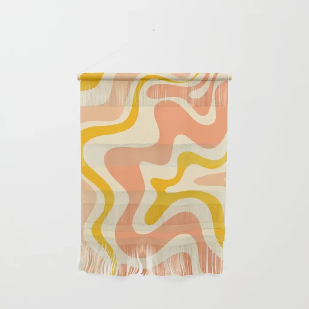 Retro Liquid Swirl Abstract Pattern Pink And Mustard Marigold Wall Hanging