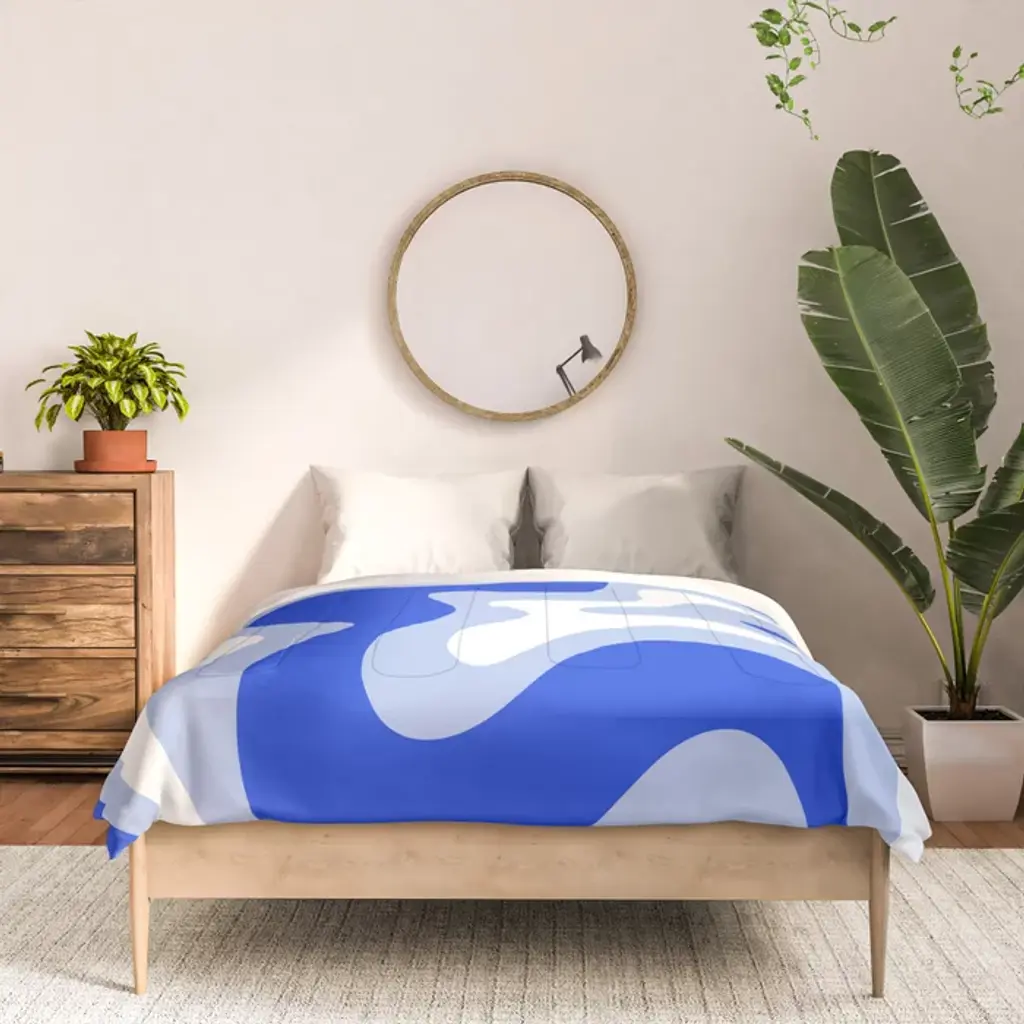 Retro Liquid Swirl Abstract Pattern Royal Blue, Light Blue, And White Comforter