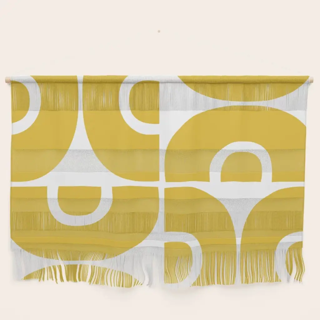 Retro Loops And Dots Midcentury Modern Pattern In Light Mustard, White, And Navy Blue Wall Hanging