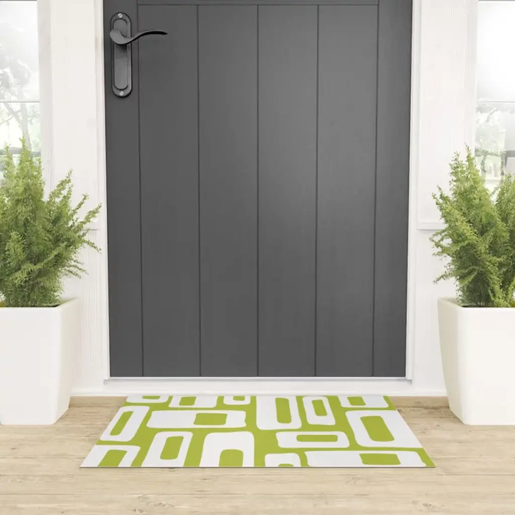 Retro Mid Century Modern Abstract Pattern 335 Chartreuse Welcome Mat