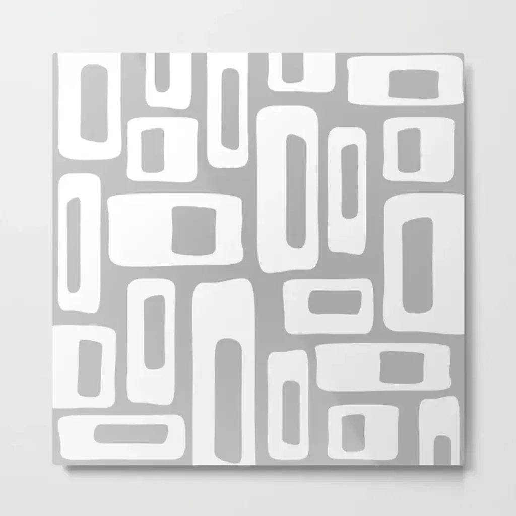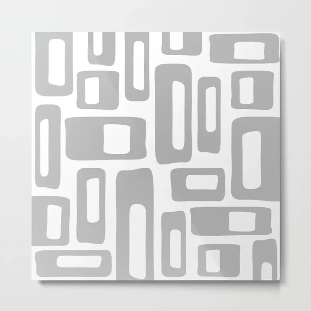 Retro Mid Century Modern Abstract Pattern 335 Mid Mod Winter Gray Metal Print