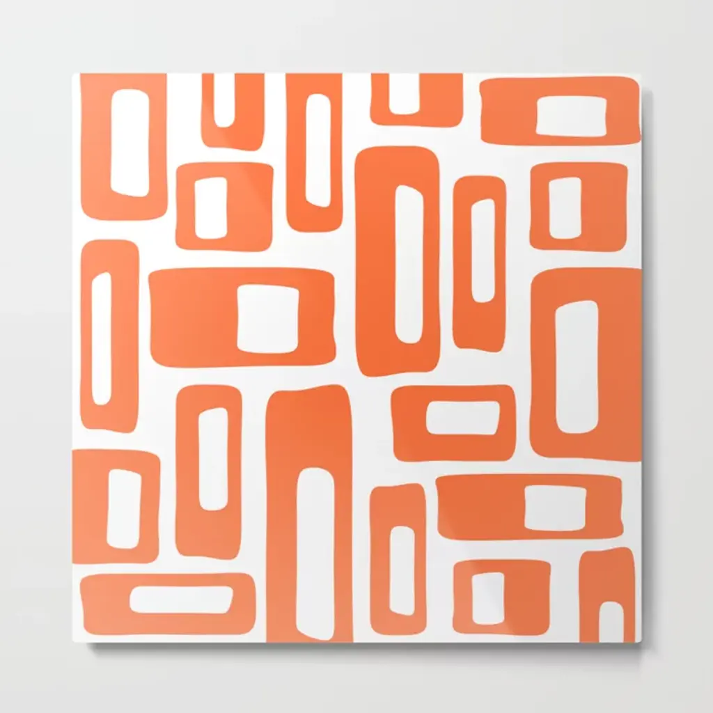 Retro Mid Century Modern Abstract Pattern 335 Orange Metal Print