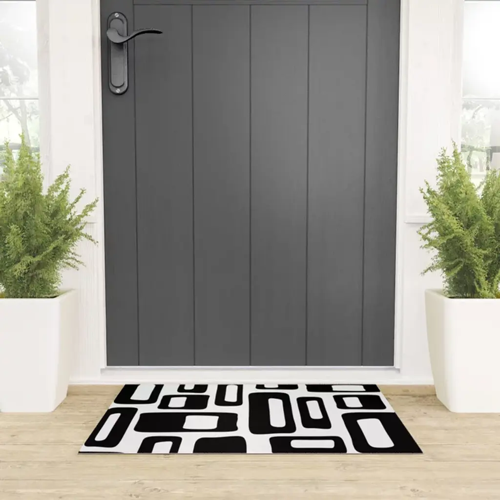 Retro Mid Century Modern Abstract Pattern 336 Black And White Welcome Mat